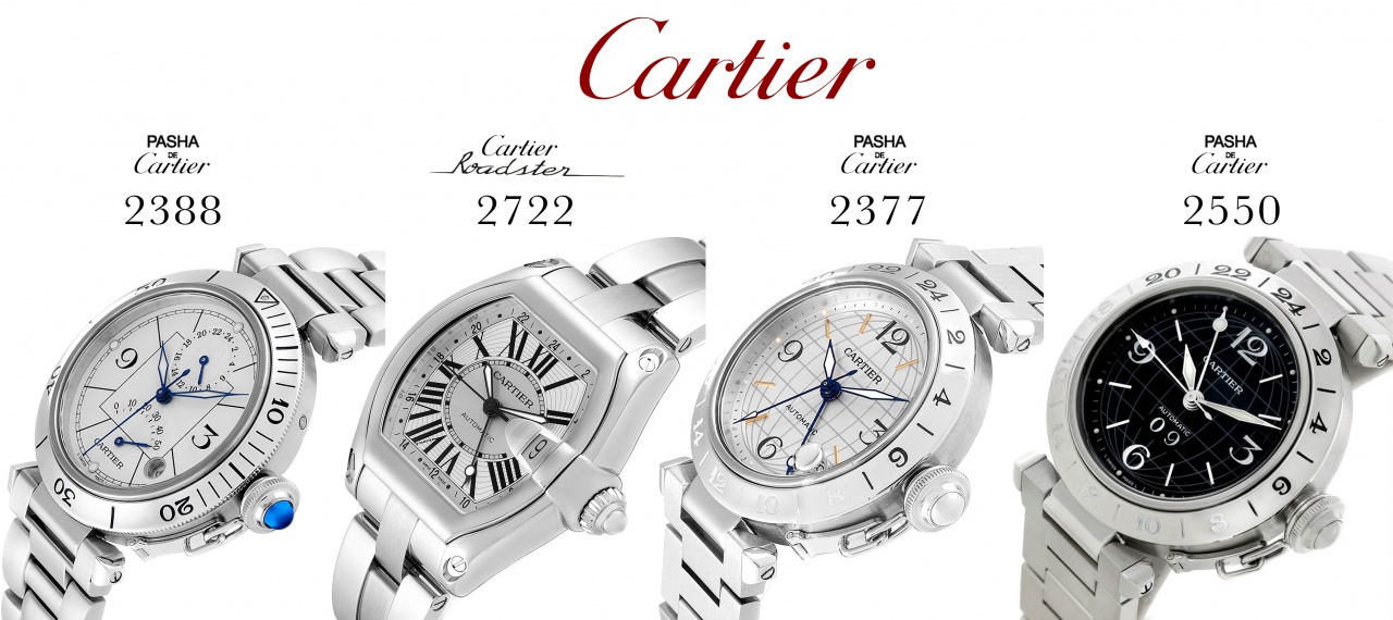 А именно: Cartier de Pasha 2388, 2377, 2550 и Cartier Roadster 2722 (для наглядности своего выбора и сравнения я создал простенький коллаж).