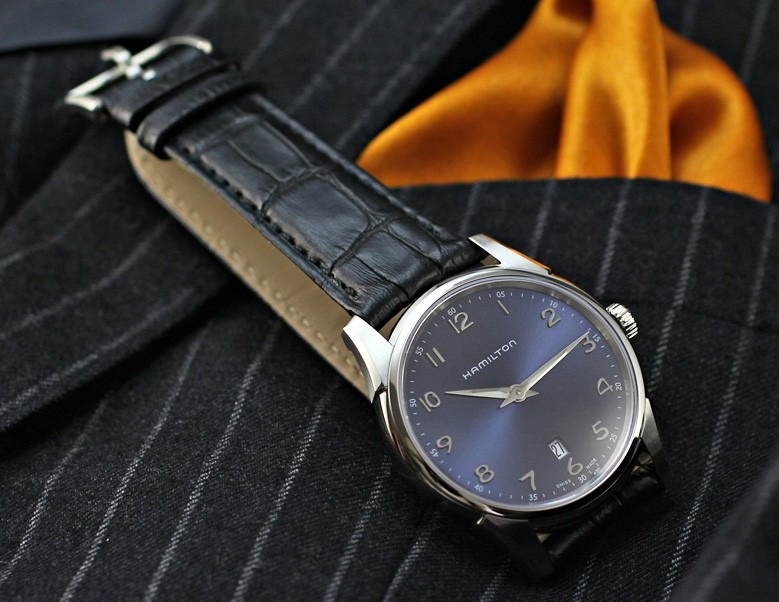 Hamilton Jazzmaster Thinline Blue H38511743 – чуть подороже, отсутствие секундной стрелки.