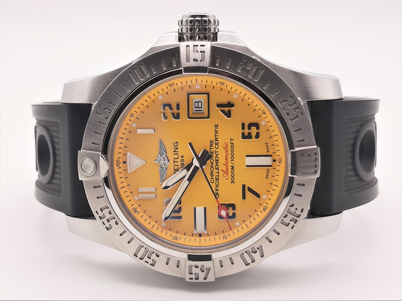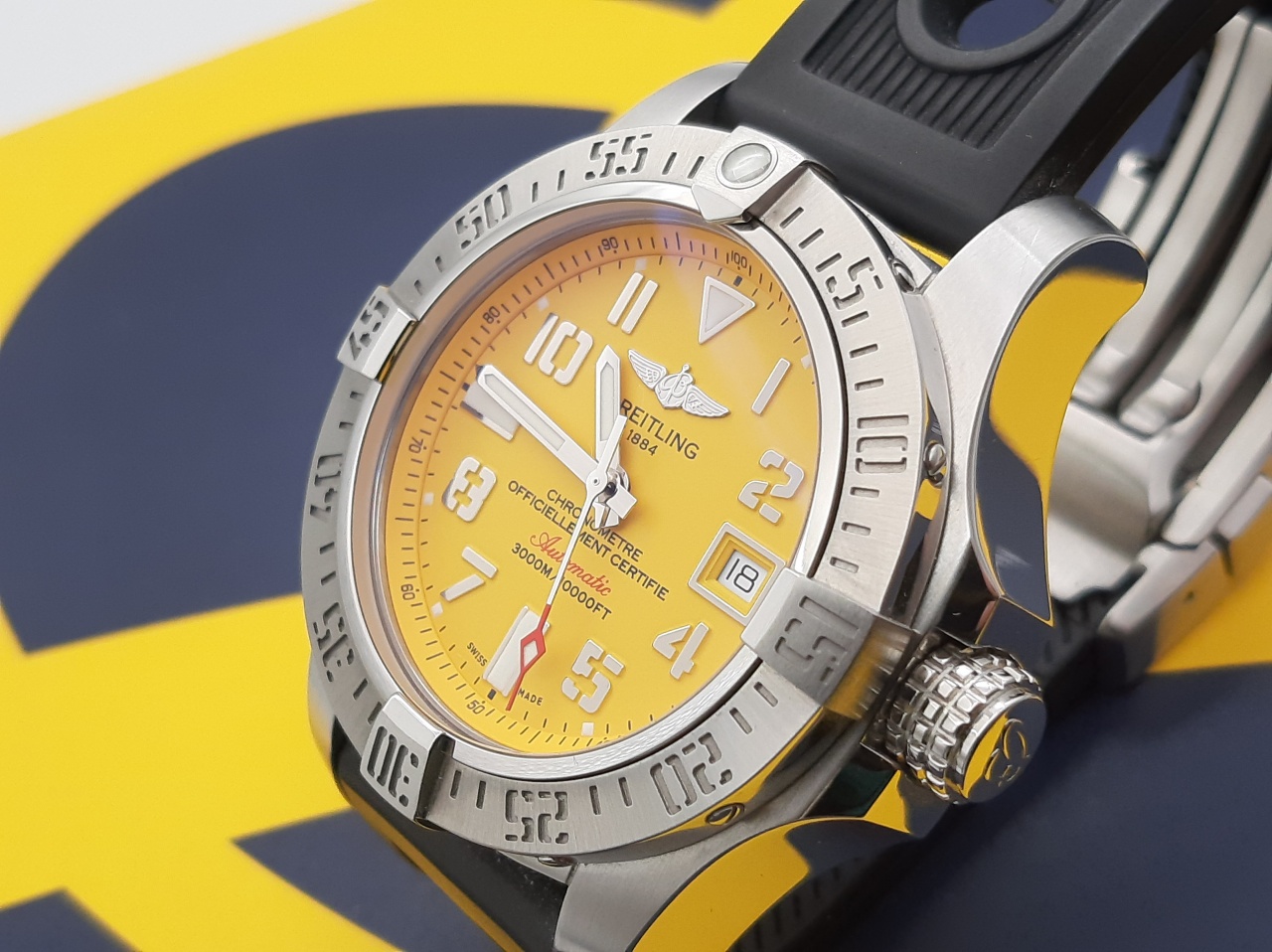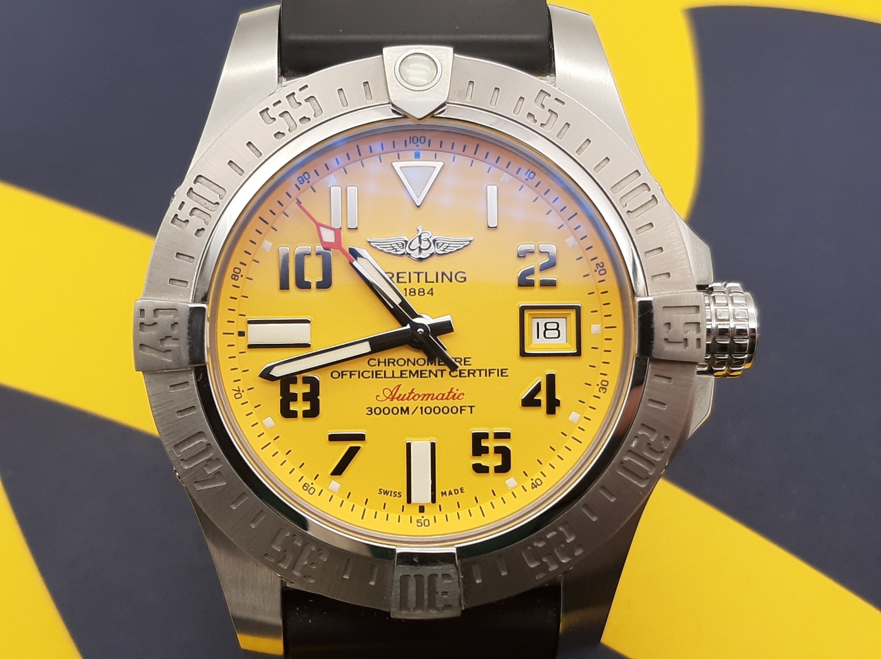 ХИТ! Breitling Avenger II Seawolf A17331 / 45 мм / Yellow Dial / Дайвер 3000 м