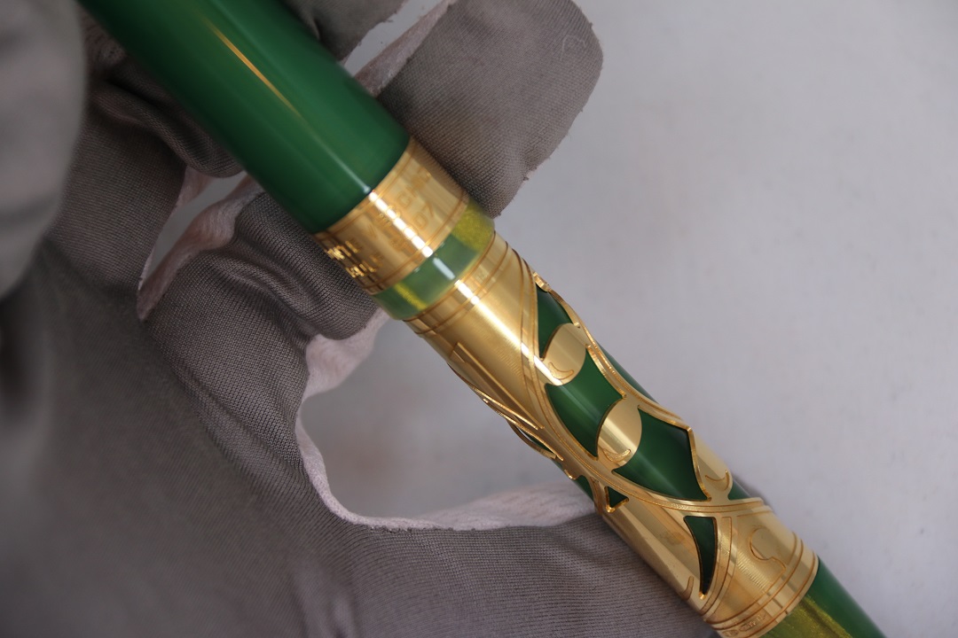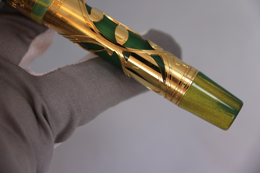 На колпачке ручки изображен силуэт моста Ponte Vecchio, на барреле ручки фигура игрока в гольф в момент удара по мячу и выгравировано имя игрока и номер ручки в формате хх/18.