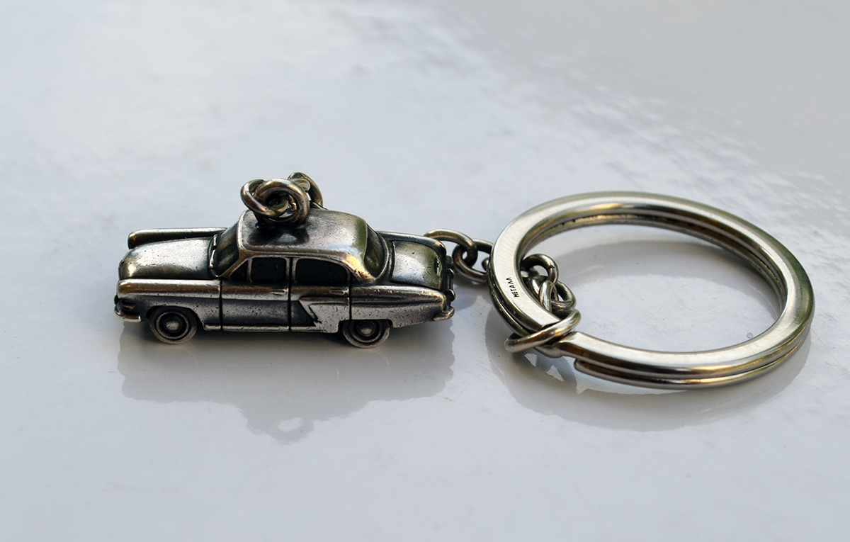 Брелок представляет собой многократно уменьшенную копию "ГАЗ-21" – мечты каждого простого советского гражданина. Машина со знаменитой фигуркой оленя на капоте была выпущена в 1956 г. знаменитым Горьковским автомобильным заводом. Этот поистине передовой автомобиль получил высшую награду на Всемирной выставке в Брюсселе в 1958 г.