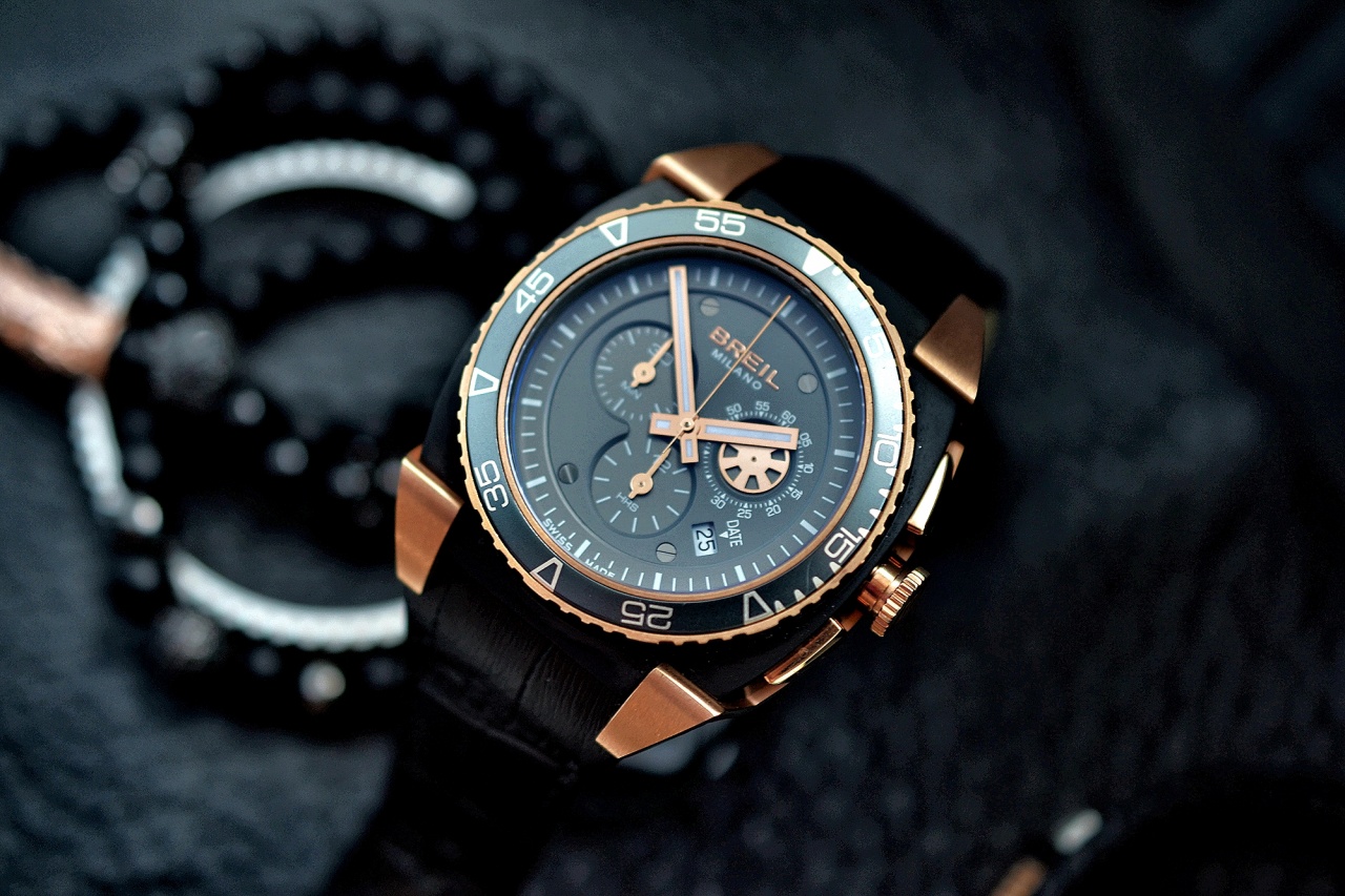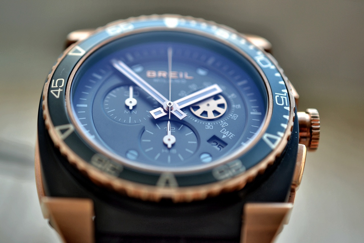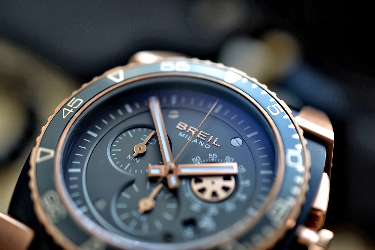 Безель черно-бронзового цвета – поворотный, однонаправленный.