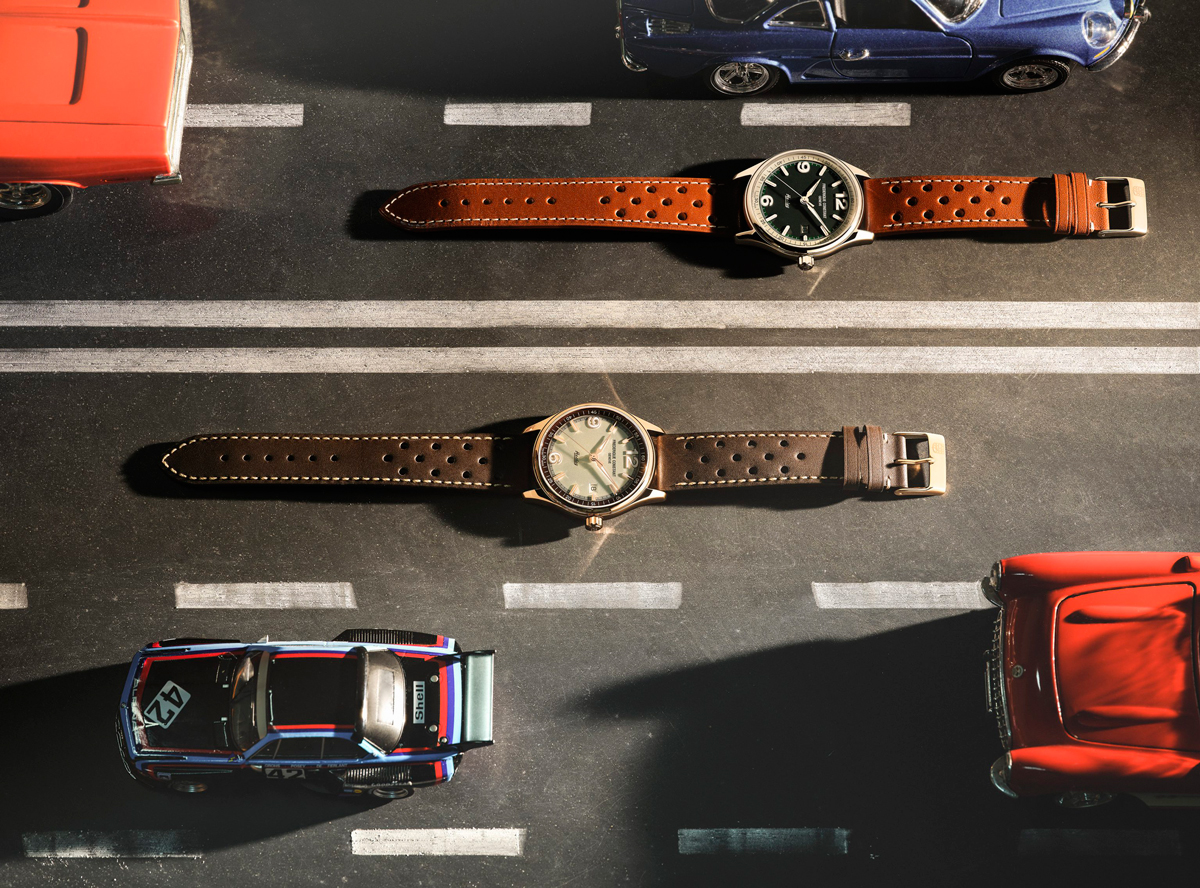 Первая модель линейки заключена в 40-миллиметровый корпус из нержавеющей стали с покрытием из розового золота. Часовая и минутная стрелки, а также часовые индексы выполнены в тон корпусу и покрыты люминофором. Серебристый циферблат окружает коричневое кольцо с минутной разметкой, гармонирующее с кожаным перфорированным ремнем, напоминающем о раллийных часах первой половины 20-го века.