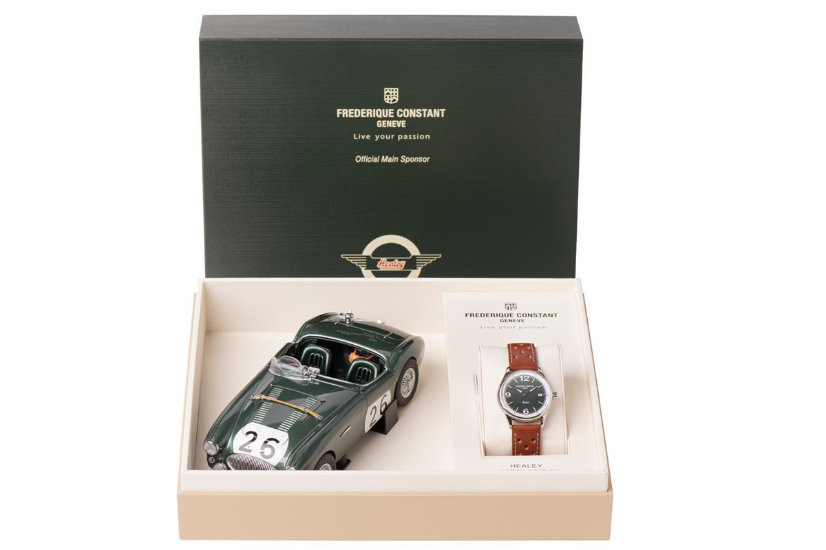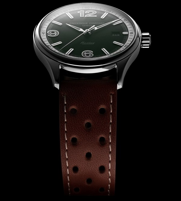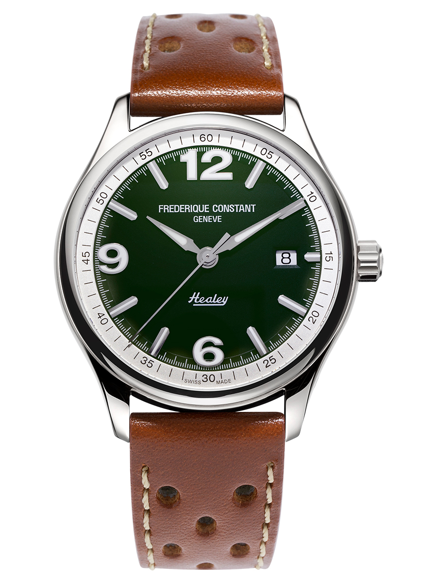 Vintage Rally Healey Automatic. Представленные впервые в 2004 году лимитированные серии Vintage Rally «Healey» отмечают партнерство Frederique Constant Manufacturing с автомобильным брендом Austin-Healey. Frederique Constant решили отойти от традиционных спортивных хронографов, активно использующихся в автомобильной тематике, и модели этого года представляют из себя классический трех-стрелочник в ретро-стиле.