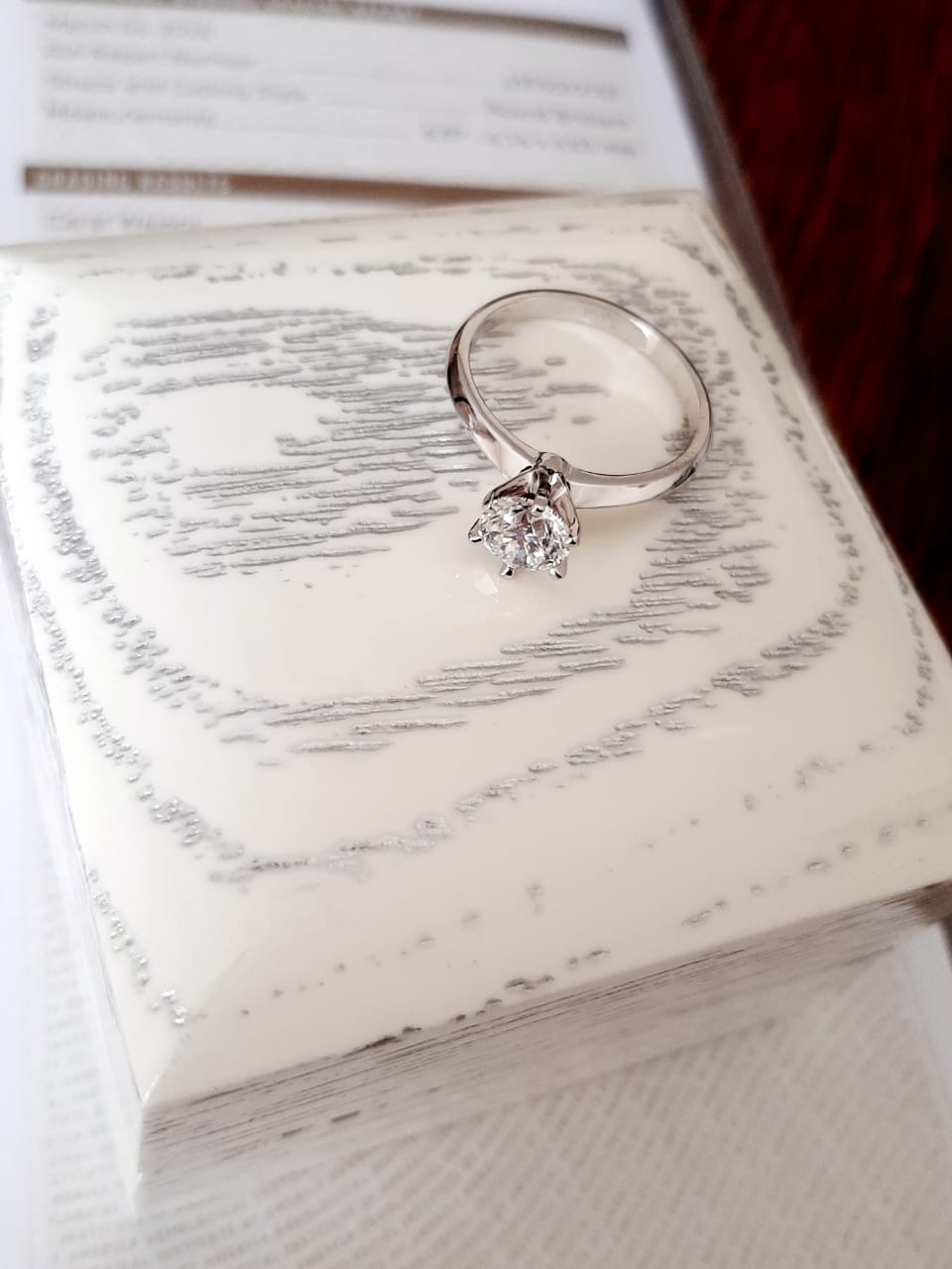 Идеальное кольцо из белого золота с бриллиантом 1 карат, классическая модель не оставит равнодушной ни одну девушку.