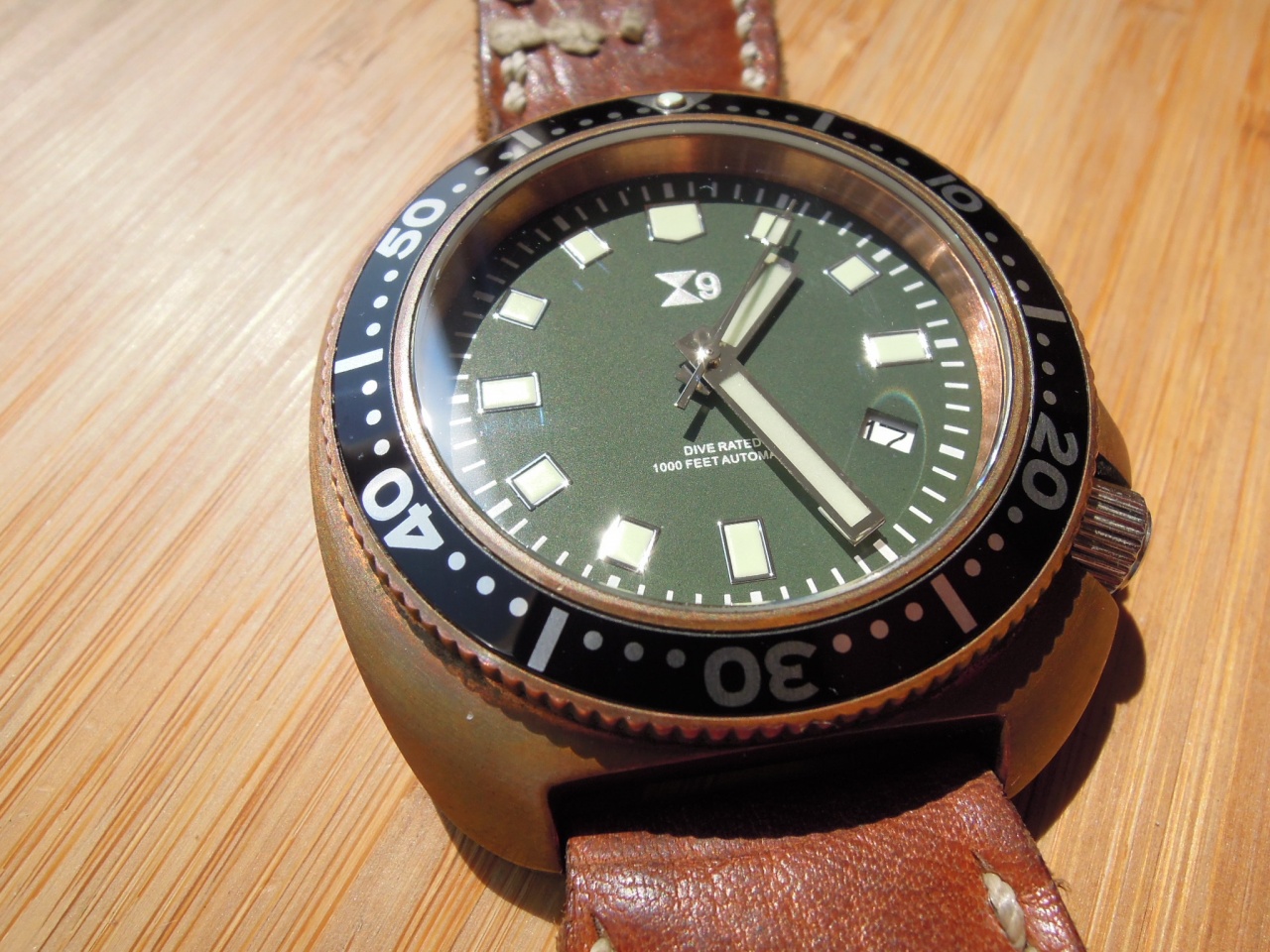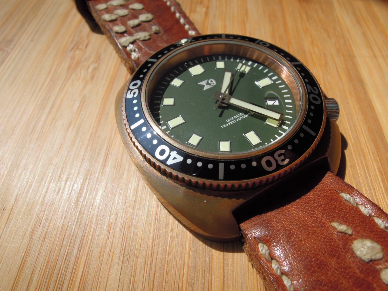 TC-9 Винтажный дайвер в бронзе на кастомном ремешке с кастомной бронзовой баклей от ROLKO.