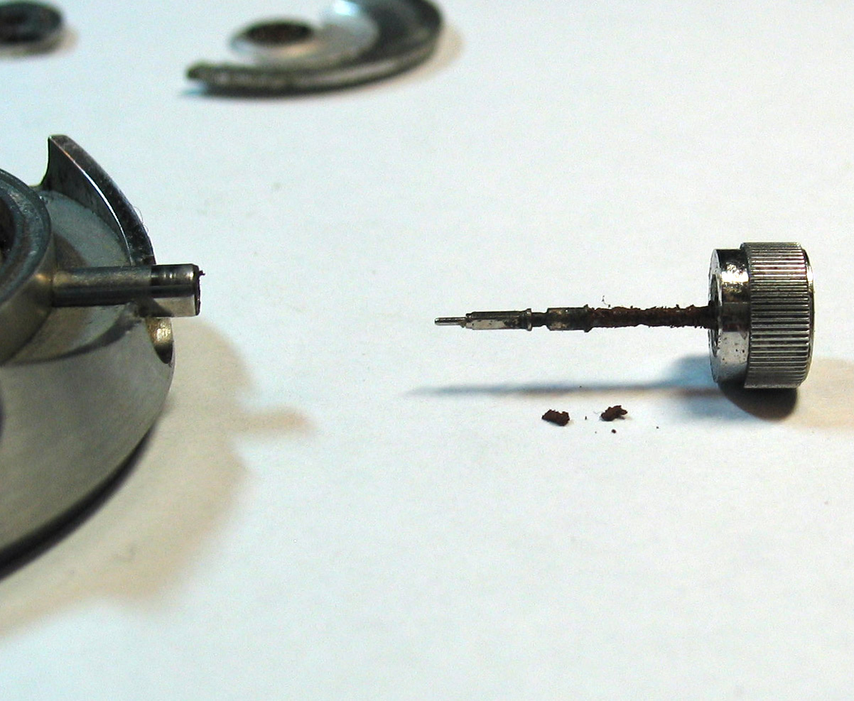 4. Душ в часах больше не принимал - просто умывал руки - и вскоре обнаружил старое доброе "запотевание". Решил не дожидаясь "коррозии" разобрать и просушить механизм.