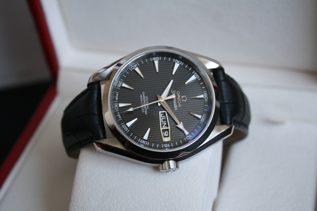 ЦЕНА!!! OMEGA AQUA TERRA ANNUAL CALENDAR 231.13.43.22.06.001 /ЧЕРНЫЙ ЦИФЕРБЛАТ/ АЛЛИГАТОР С КЛИПСОЙ