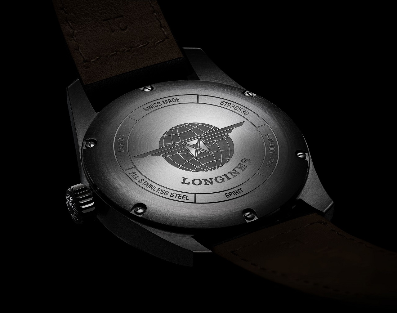 От посторонних глаз механическая начинка моделей скрыта под глухой задней крышкой корпуса с рельефным изображением логотипа марки на фоне глобуса и маркировкой водонепроницаемости WR 100 м.