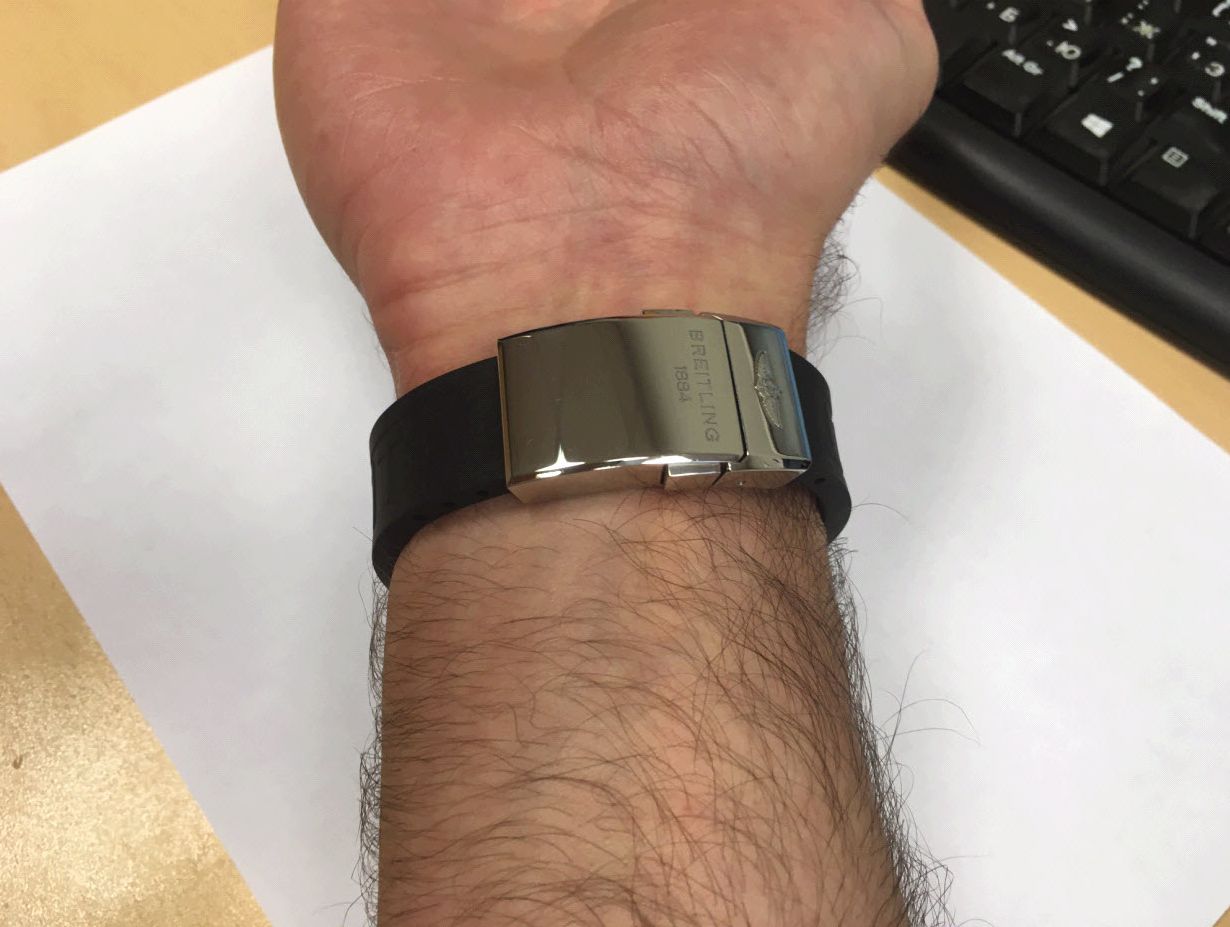 Когда я пытаюсь сказать, что мне так неудобно, он завет еще одного мастера, который мне заверяет, что по стандарту Брейтлинга каучук укорачивают только так и никак по-другому!!!
