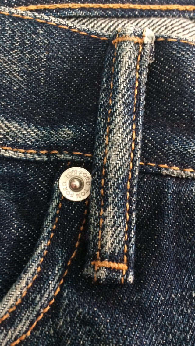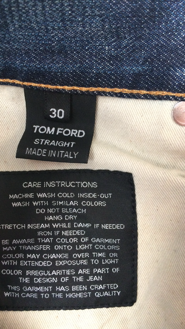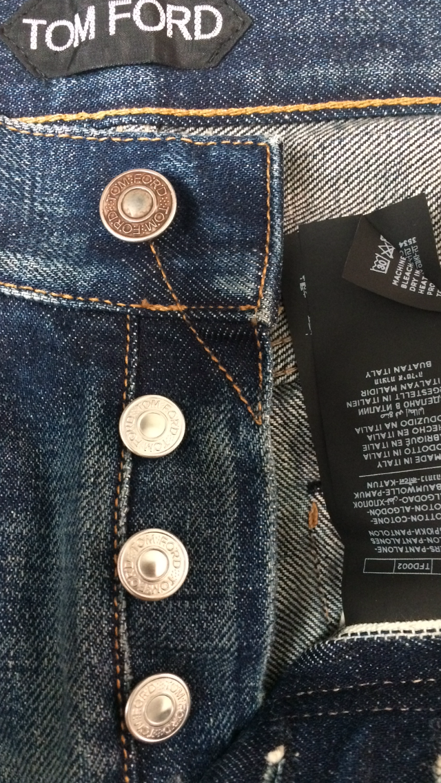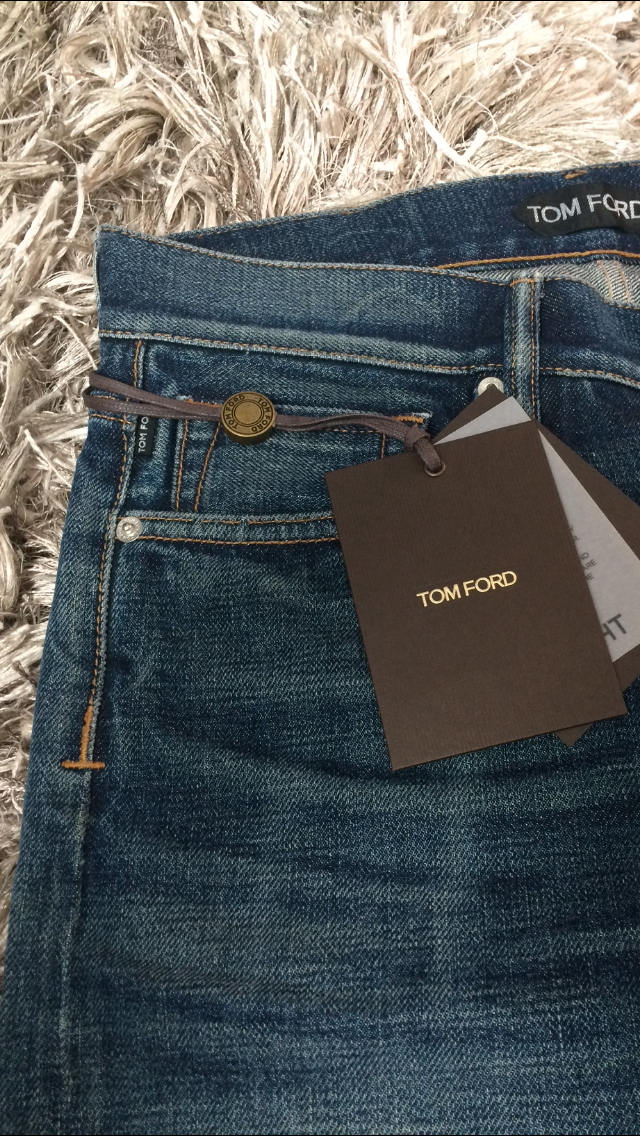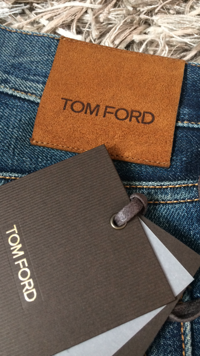 В продаже,новые мужские джинсы от американской люкс-марки TOM FORD.Джинсы прямого кроя(STRAIGHT),слегка зауженные книзу,изготовлены из высококачественного,мягкого хлопка с искусственно созданными заломами и потёртостями.Имеют контрастную светло-коричневую прострочку,застёжку на брендированные пуговицы-клёпки серебристого цвета,сзади на поясе традиционный ярлык с названием бренда,выполненный из тёмно-жёлтой замши.