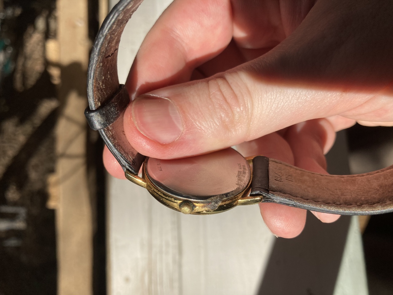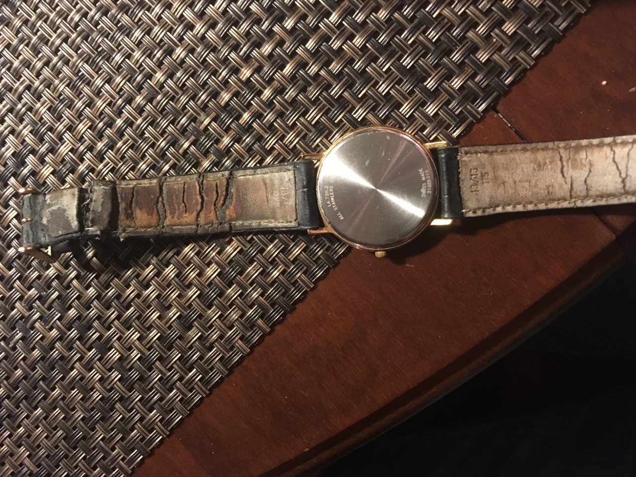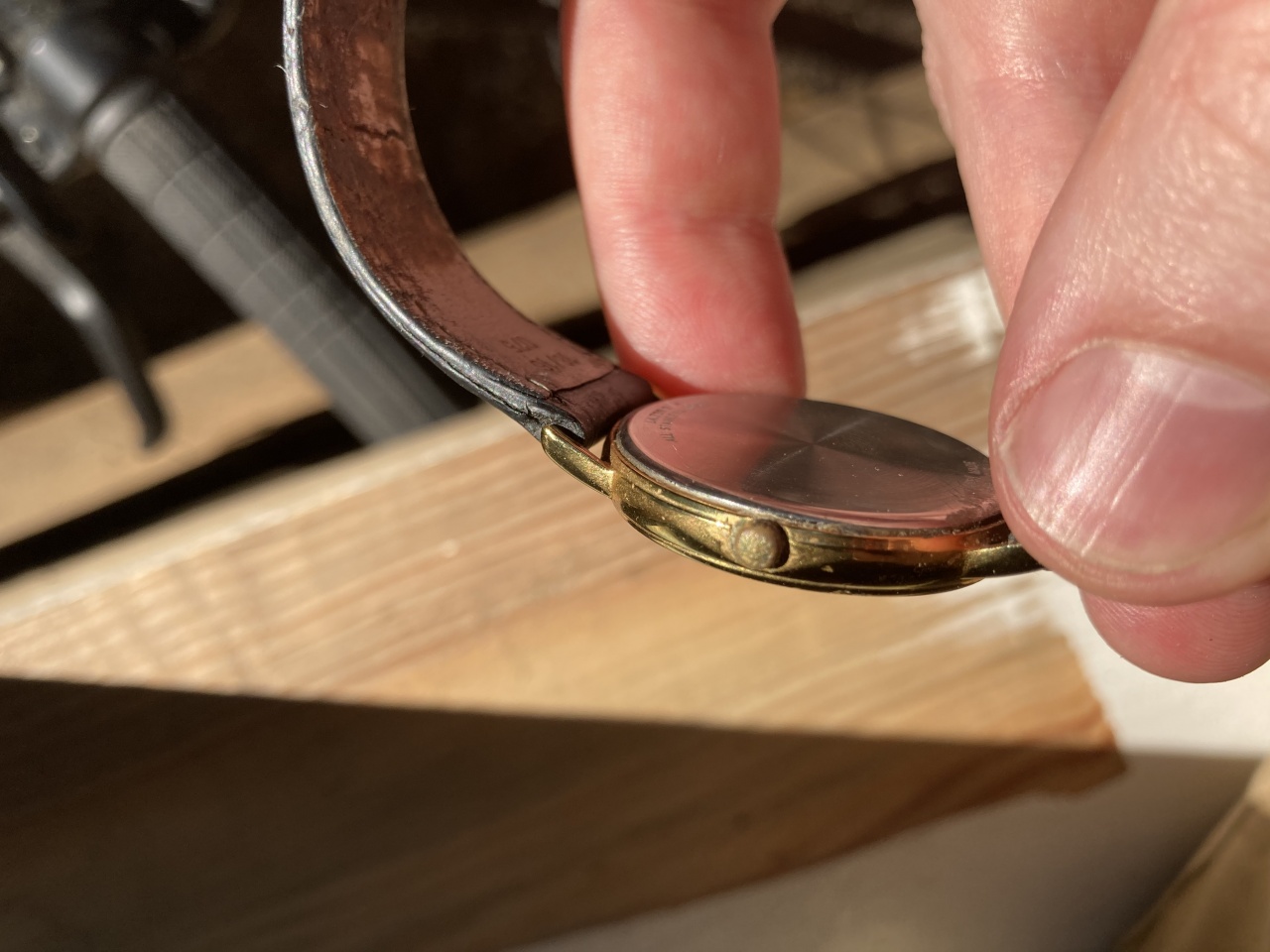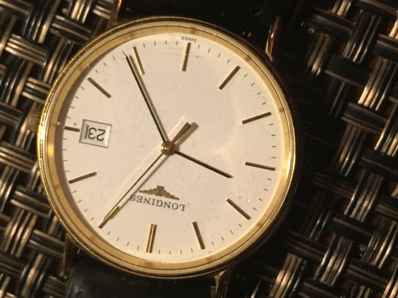 Зашёл к родителям и впервые увидел отца без часов а сами часы лежащими на столе(что меня уже удивило, ниже станет ясно, почему), пригляделся и опечалился. ЗГ вмята несколько раз до неузнаваемости логотипа