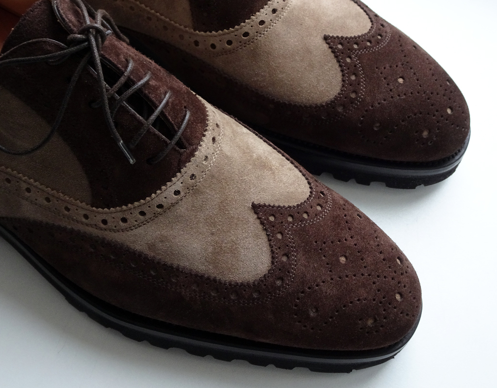 Шикарная обувь от знаменитого неаполитанского бренда сшита из мягкой фактурной замши в великолепном сочетании двух оттенков коричневого цвета. Миндалевидный мыс украшен брогированием. Прочная подошва из инновационного материала XL EXTRALIGHT дополнена глубоким протектором и отлично подходит для любого сезона.