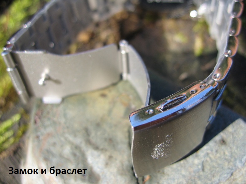 К корпусу стандартными подпружиненными втулками крепится литой браслет длиной примерно 170 мм. и шириной 22 мм. Браслет имеет 16 полированных по краям звеньев, из которых 8 являются регулировочными, и имеют соответствующую метку изнутри в виде стрелки. Браслет имеет дизайн из трех матовых и четырех полированных полос. Изнутри браслет матовый. Матовый двухкнопочный замок, достаточно удобный, с двумя предохранительными скобами, которые помогают удержать часы на руке после расстегивания браслета. Легко захлопывается и расстегивается после несильного нажатия на кнопки. На замке имеется выдавленный логотип, и слово ORIENT, выдавленное канатом. Скобы матовые с надписью STAILESS STEEL.