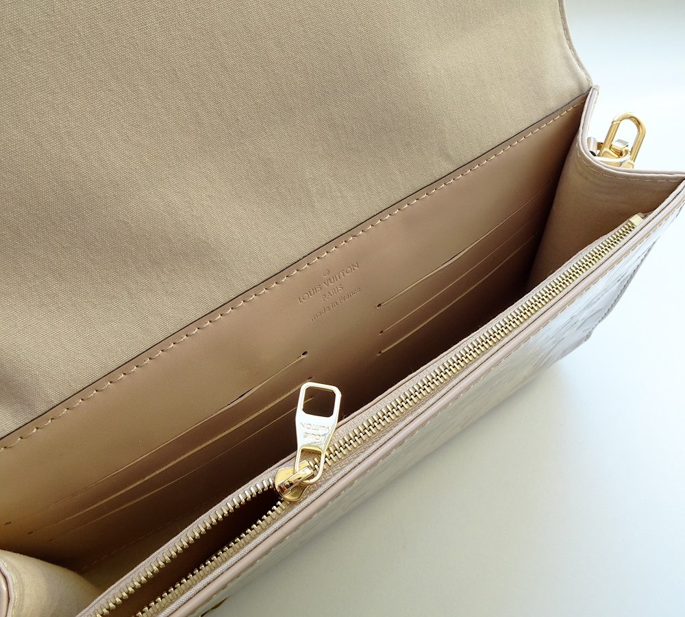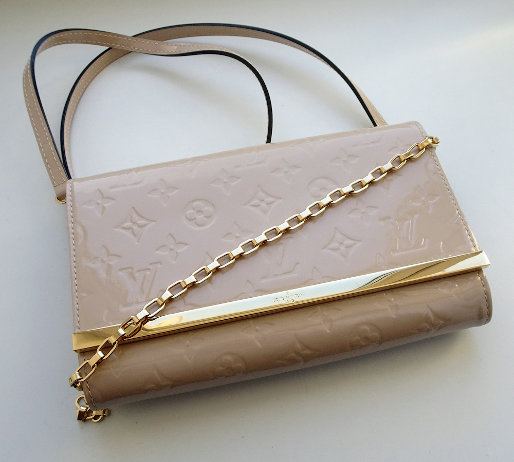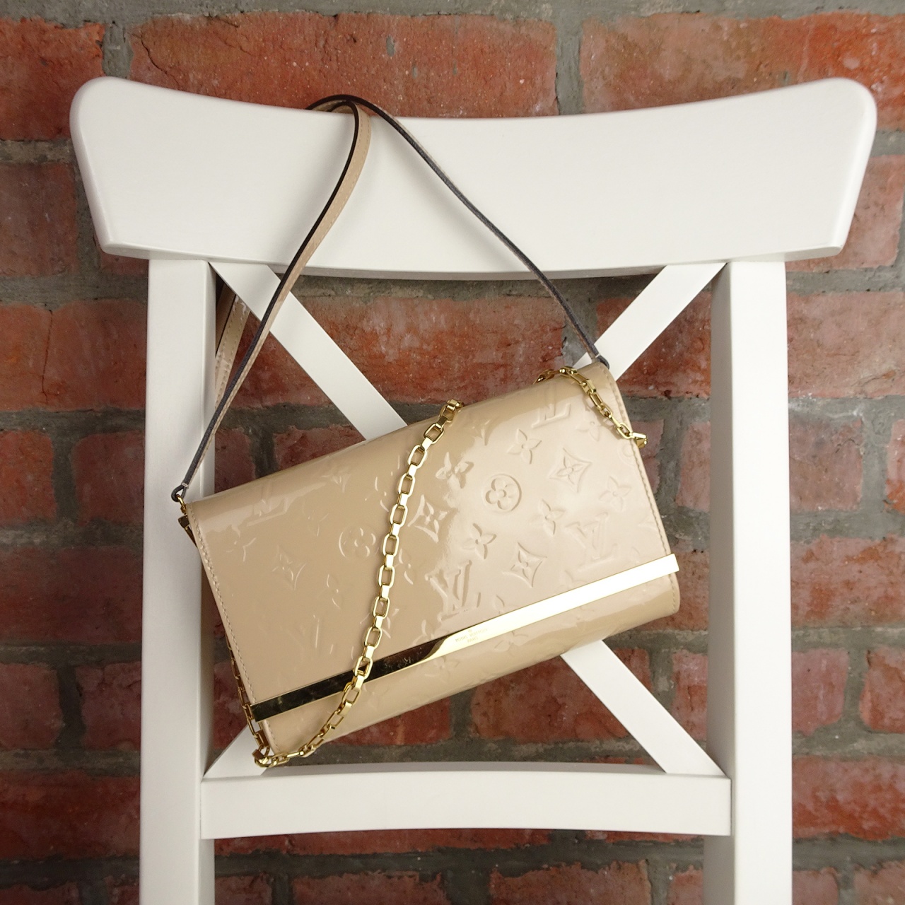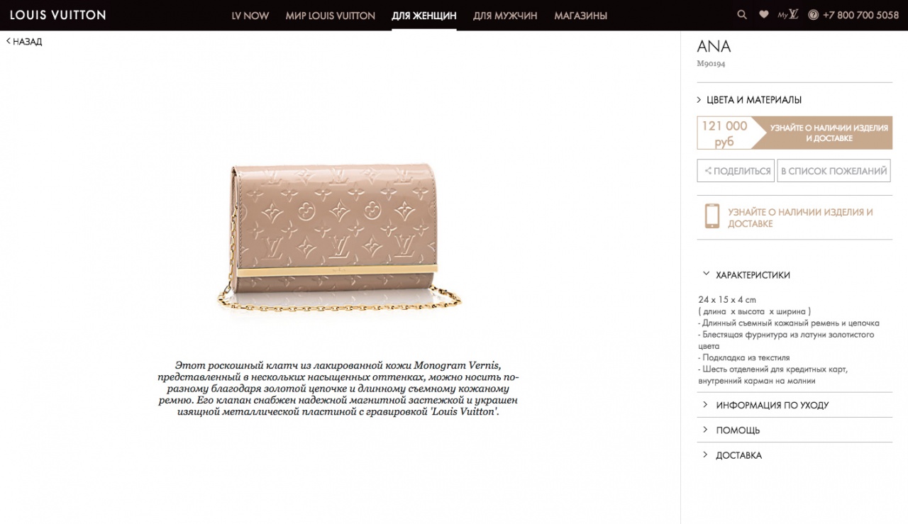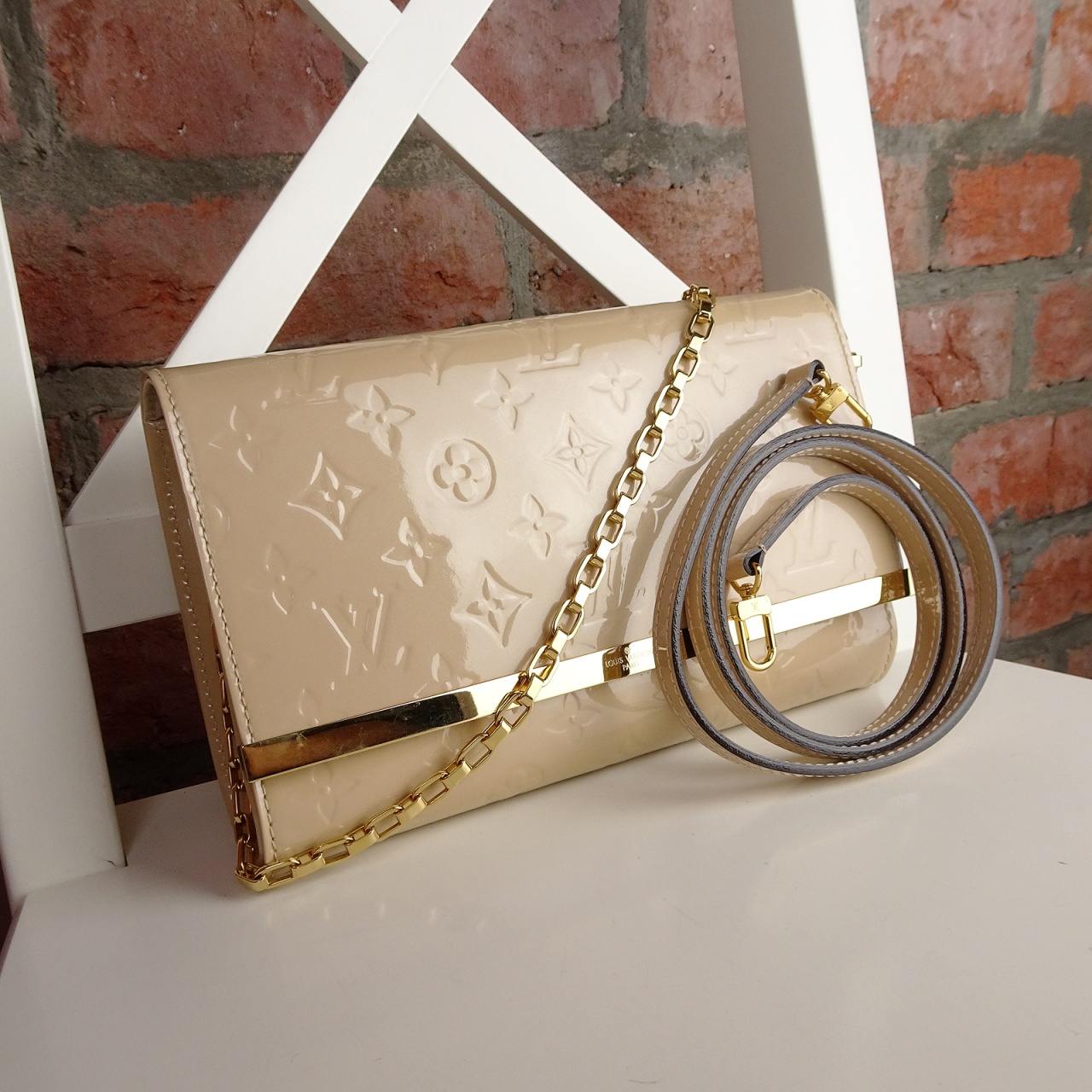 "Эту великолепную сумочку-клатч из лакированной кожи Monogram Vernis можно носить по-разному благодаря съемному ремню из кожи и позолоченной цепочке. Роскошная и женственная модель Ana идеально подойдет для любого случая и украсит любой наряд. Клапан сумочки снабжен надежной магнитной защелкой и украшен изящной металлической пластиной с гравировкой Louis Vuitton. Откройте сумочку, чтобы оценить удобную организацию внутреннего пространства с вместительным основным отделением, слотами для карт и большим отделением-карманом на молнии. Идеальный компаньон для стильных женщин, сумочку можно носить и как клатч, и как сумочку в руках, на локте или на плече с вечерним туалетом, а также через плечо с повседневной одеждой."