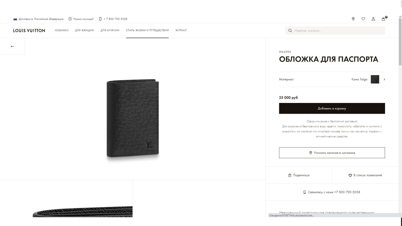 ОБЛОЖКА ДЛЯ ПАСПОРТА LOUIS VUITTON Taiga
