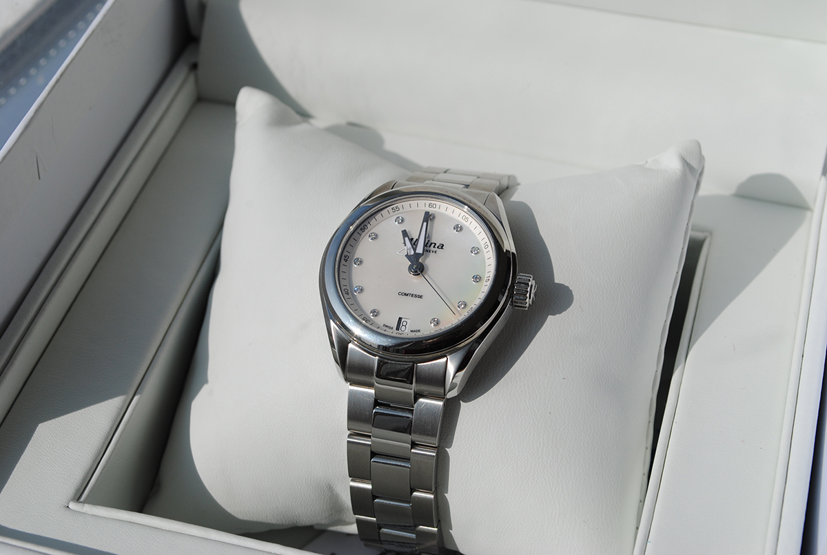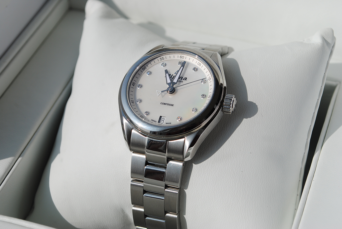 Циферблат: белый (молоко), натуральный перламутр, 11-ть меток бриллиантов