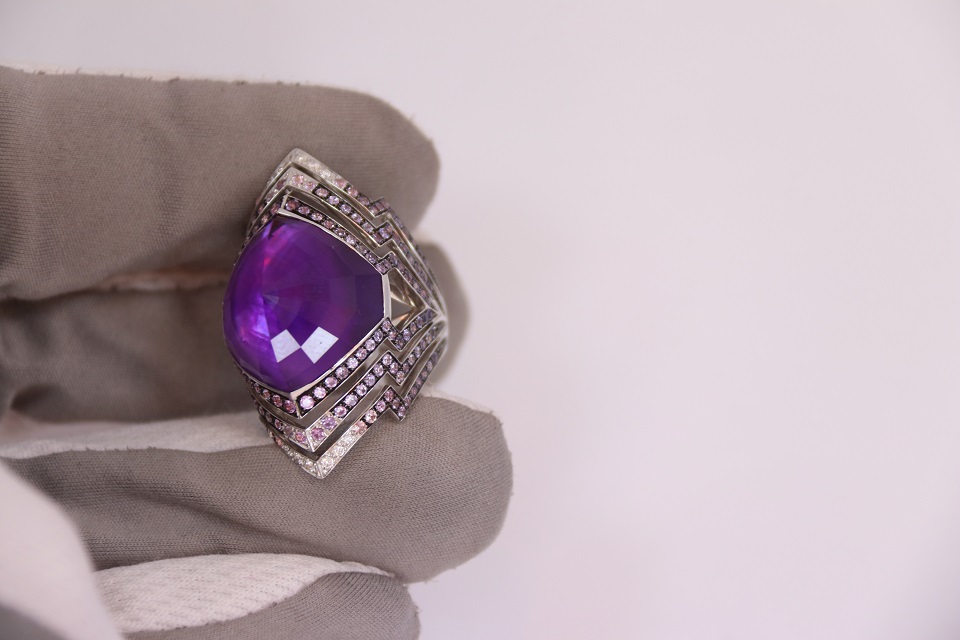 Stephen Webster Lady Stardust Crystal Haze / 18k White Gold, Amethyst / MOP, Sapphires & Diamonds.