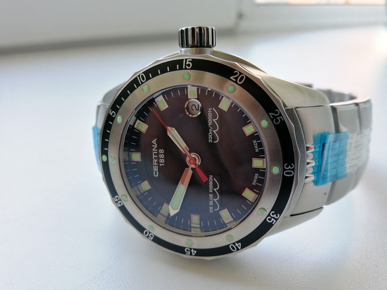 Предлагаю к продаже уже давно ставшие легендарными Certina DS Blue Ribbon. Данная модель в силу шикарных характеристик и необычного дизайна, на мой скромный взгляд, не уступает гораздо более дорогим дайверам от именитых швейцарских производителей, а в своей ценовой категории вообще является бестселлером. В живую часы смотрятся просто обалденно. Многоуровневый цифер с накладными элементами и гильоше. Очень яркий люм на стрелках, метках и заводной головке, светящий как прожектор и притягивающий взгляд. Отличный плотный браслет на винтах. В общем, отличные швейцарские универсальные часы по демократичной цене.