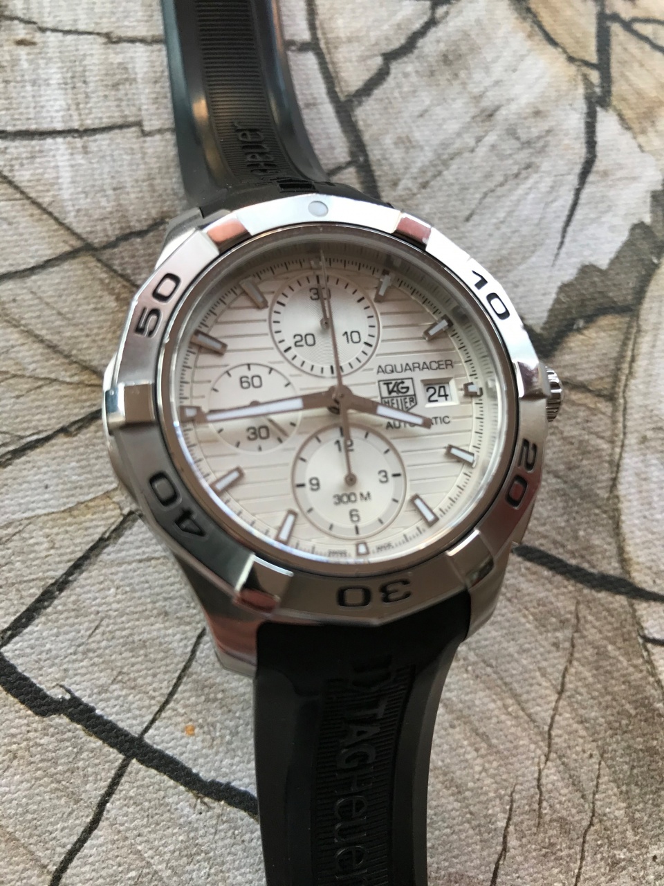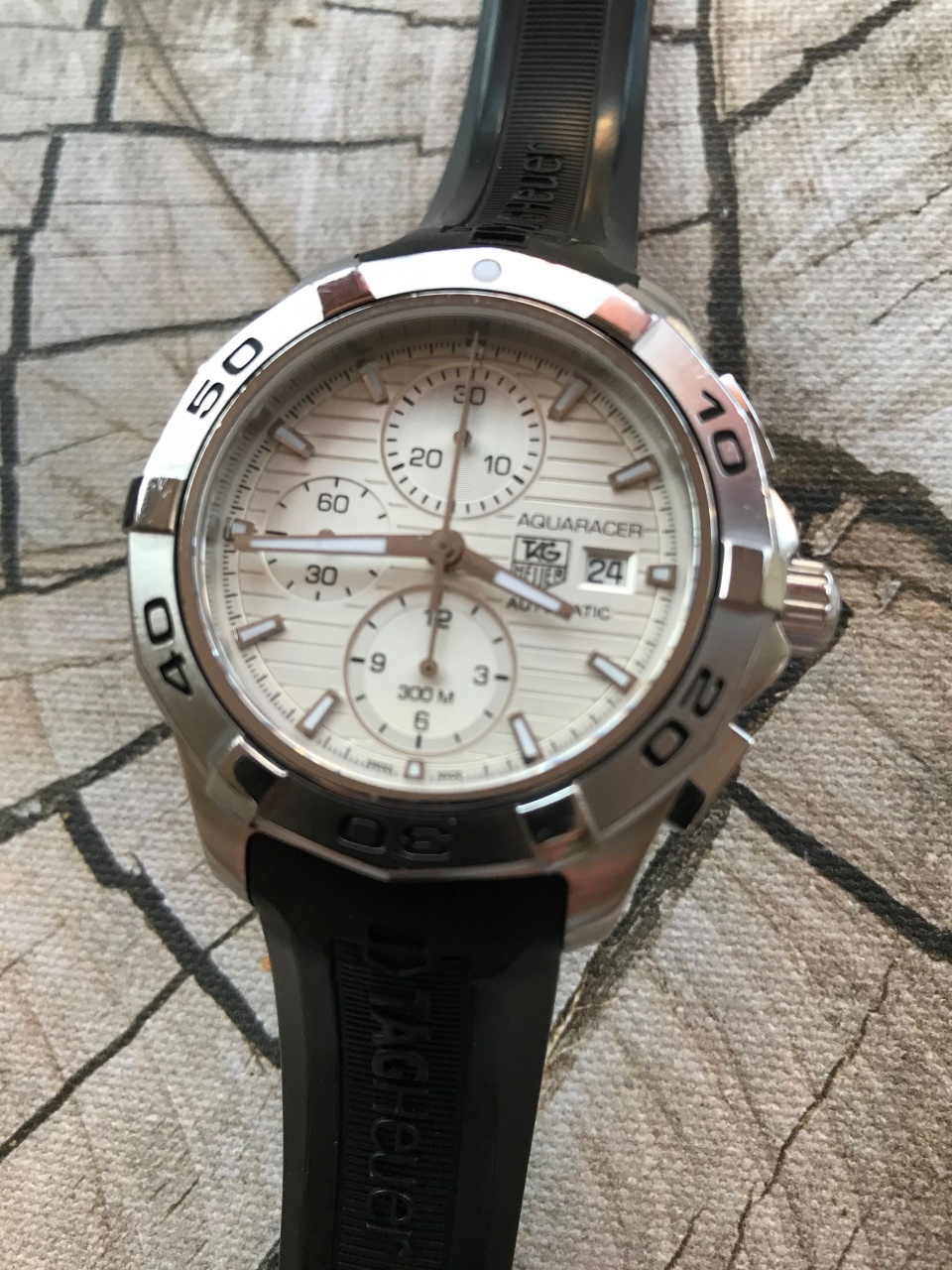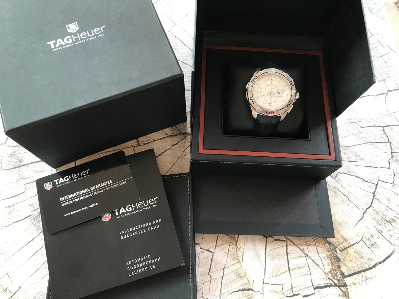 В наличии мужские часы дайверы TAG Heuer Aquaracer CAP2111.FT6028 в отличном состоянии. Присутствуют легкие следы эксплуатации, ничего критичного, ремешок в идеале. Полный комплект: часы, внешняя коробка, шкатулка, инструкция, гарантийная карта.
