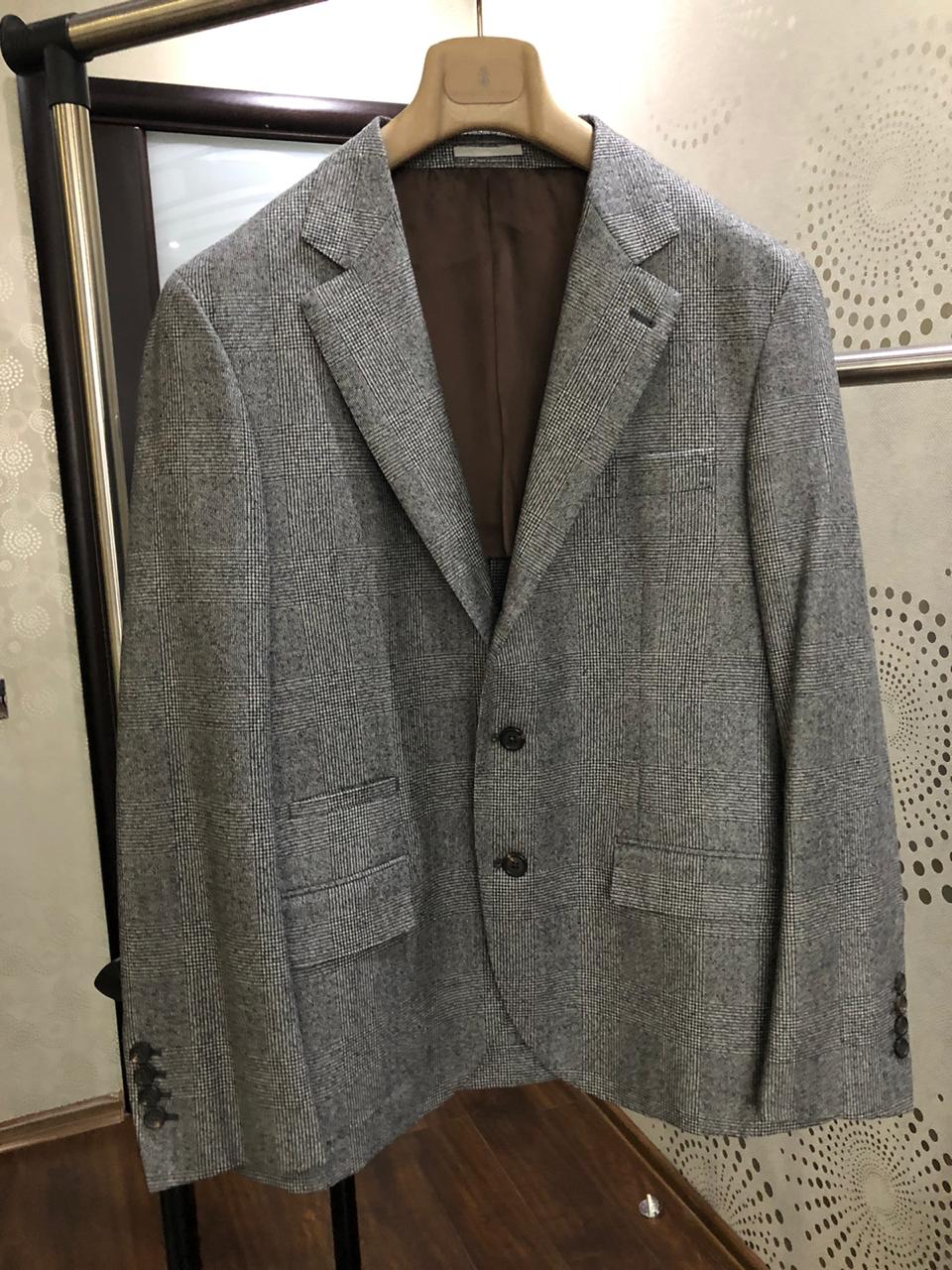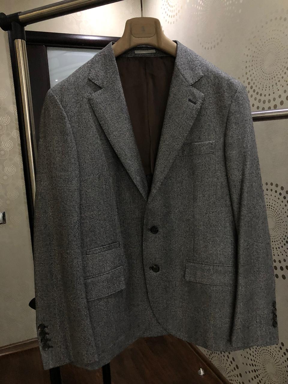 В продаже стильный мужской пиджак от люксовой итальянской марки BRUNELLO CUCINELLI.Новая фланель с узором Виндзорская клетка из натуральной шерсти делает пиджак с заострёнными лацканами благороднее и придаёт ему утончённый ретро-акцент.Крой изделия учитывает пропорции фигуры,что отличает стиль Brunello Cucinelli:модель облегает корпус,подчёркивая красоту мужского тела,а линия плеч слегка расширена.