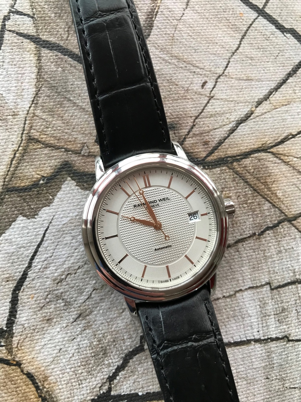 В наличии мужские часы RAYMOND WEIL Maestro 2837-SL5-65001 в отличном состоянии. В комплекте: часы, инструкция, гарантийная карта/книжка, файл для документов.