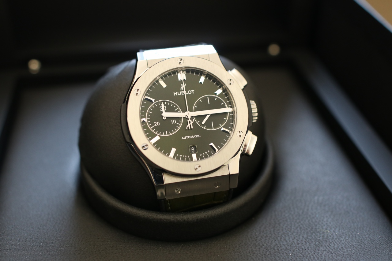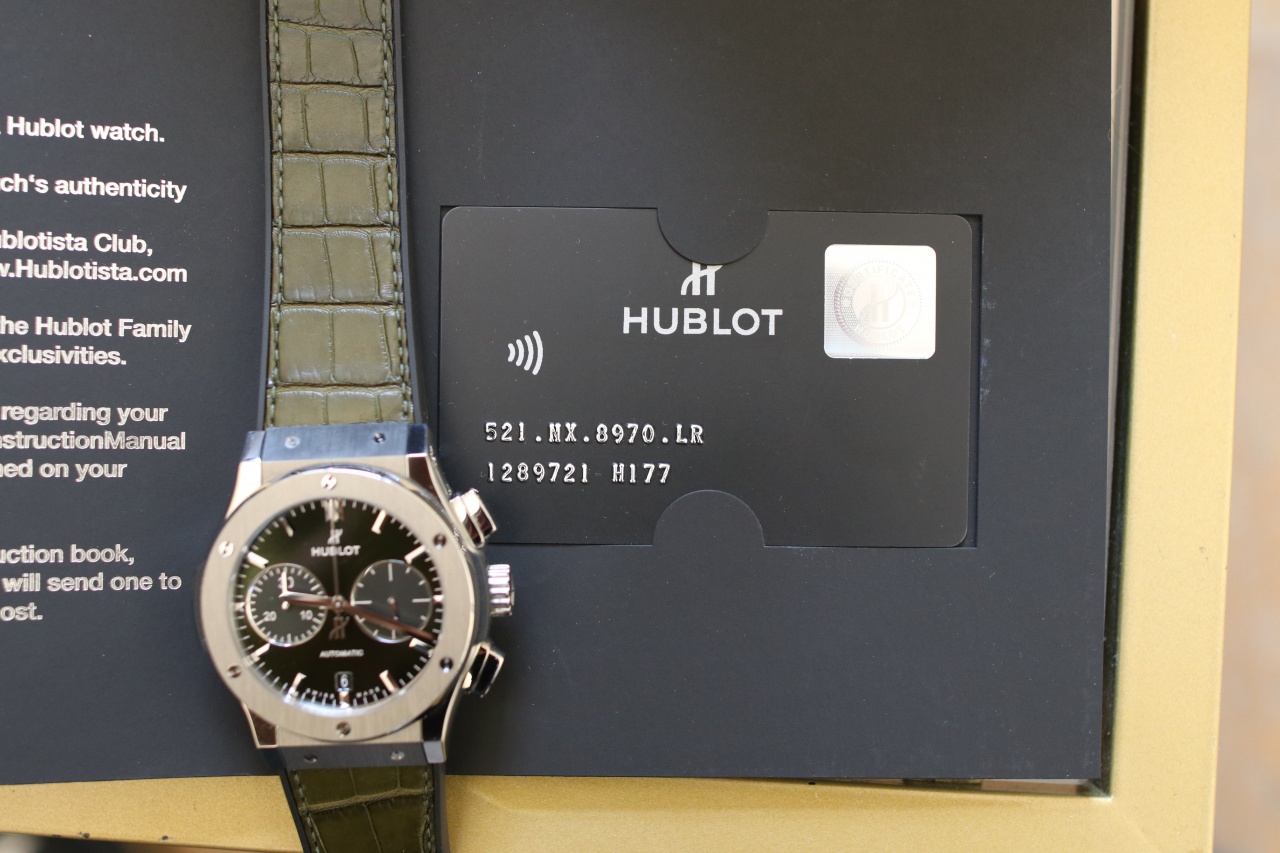 Hublot Classic Fusion Chronograph 45 Green ( Крокодил , 2020 , Оливковый цвет )
