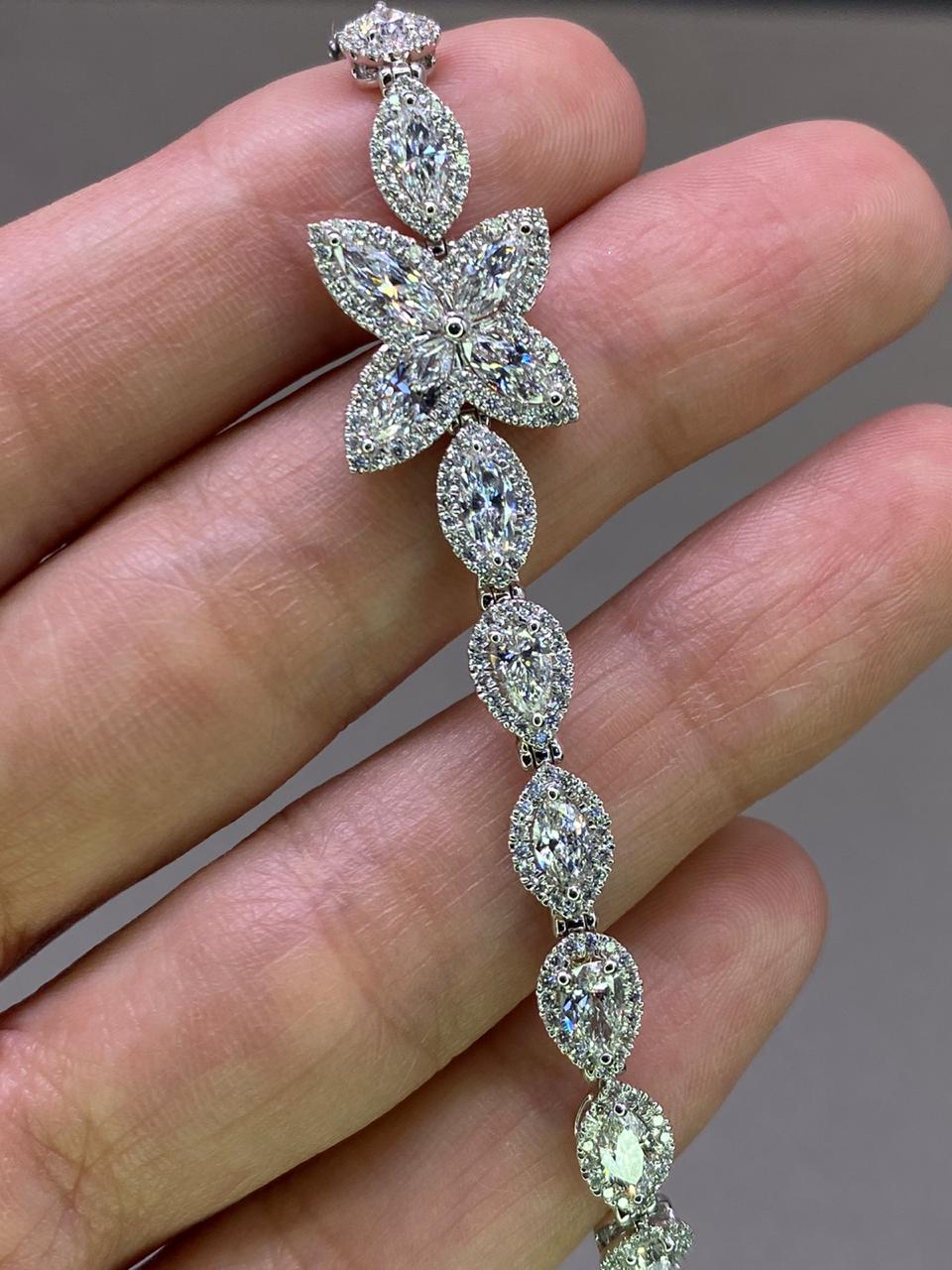 Браслет с цветочным узором со сверкающей россыпью бриллиантов и крупными центральными камнями огранки «Маркиз». Идеален для дополнения вечернего образа, подойдёт в подарок. Украшение новое!