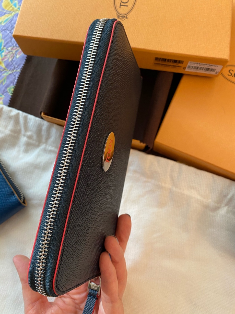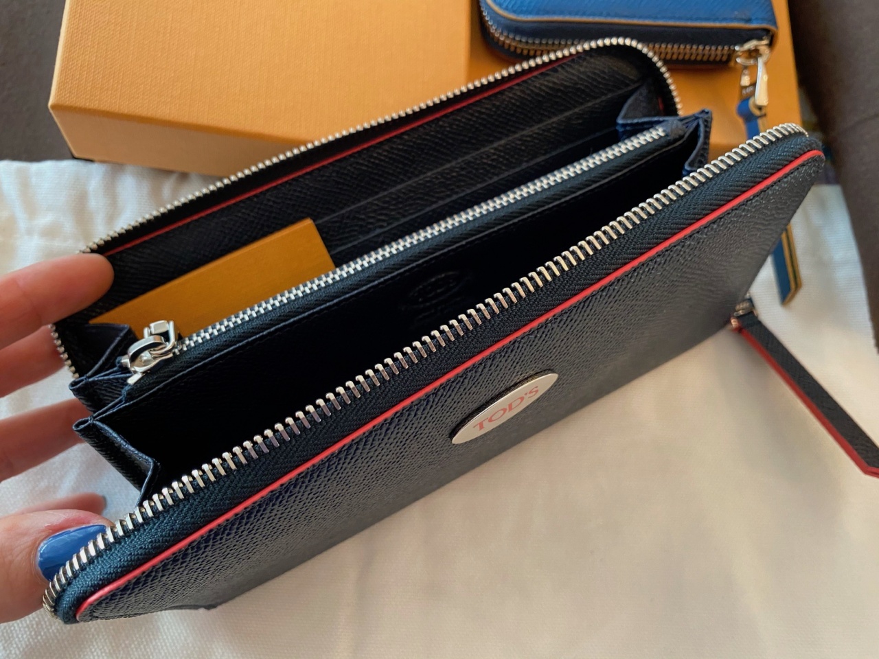 TOD'S. Женский кошелек. Большой, на молнии. НОВЫЙ. Кожа saffiano. Цвет: темно-синий с красным кантом - Часовой форум Watch.ru