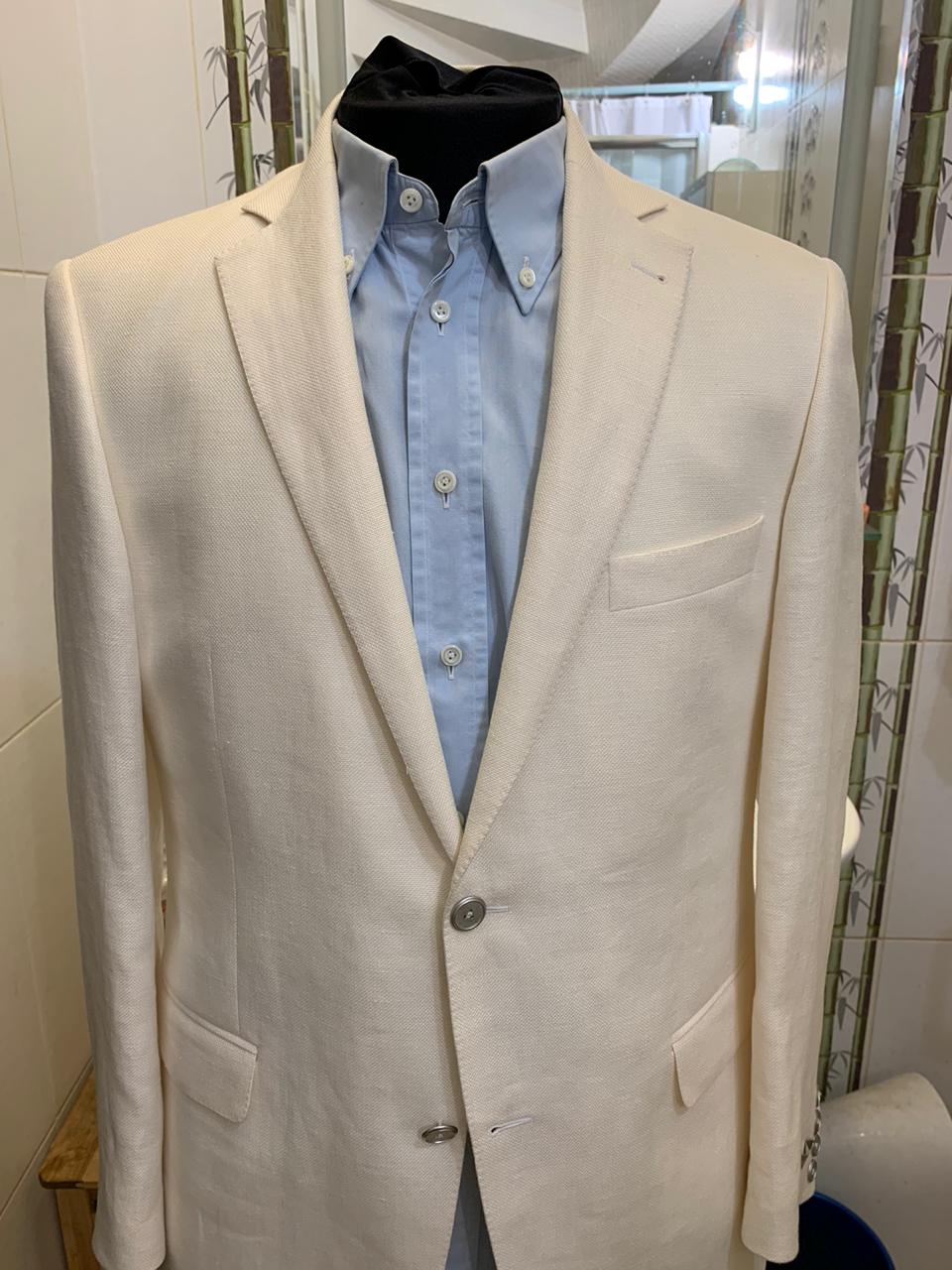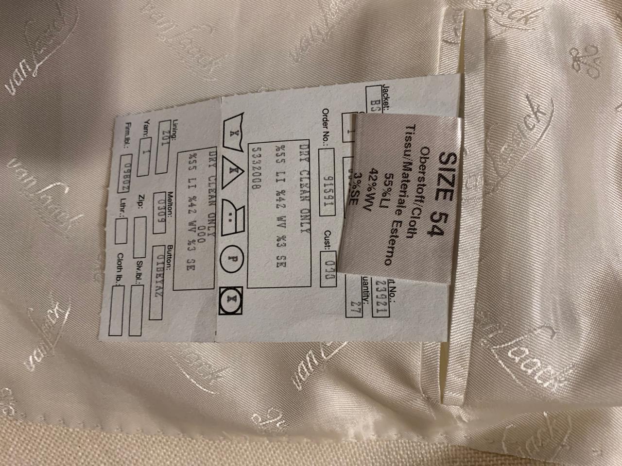 Продается новый стильный мужской пиджак бренда VAN LAACK превосходного исполнения с элементами ручной работы, ткань оригинального плетения, цвета cлоновой кости, воротник с лацканами, однобортная модель, пуговицы, накладные карманы, манжеты на пуговицах, два внутренних кармана, двойной разрез сзади, внутри на подкладке с логотипом бренда, состав : 42% шерсть, 55%лён, 3%шелк, материал фабрики Loro Piano, все бирки и запасная фурнитура прилагаются , гарантированный оригинал, размер 54(IT) , производство Италия.