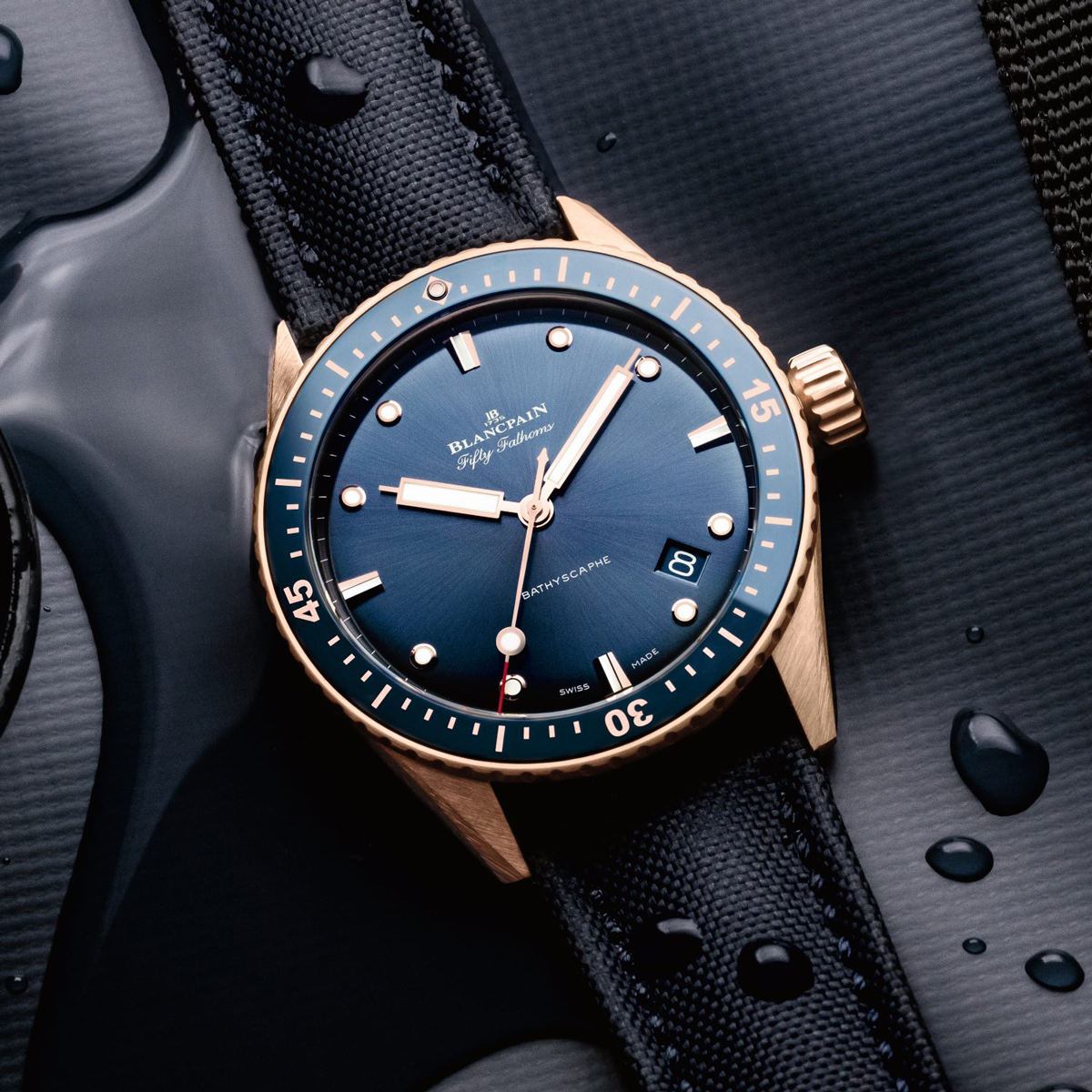 Blancpain является одним из первопроходцев в сфере часов для дайвинга и модель Fifty Fathoms, выпущенная в 1953 году, по праву считается пионером этого жанра. Говоря об этих часах, мы должны упомянуть две разные модели: первая, массивная, с крупным корпусом и сапфировым безелем, и вторая - более изящная модель Bathyscaphe с инструментальным дизайном, которая еще в конце 1950-х годов была часами для дайвинга и имела размер, подходящий для повседневной носки. Сегодня Blancpain предлагает новинку