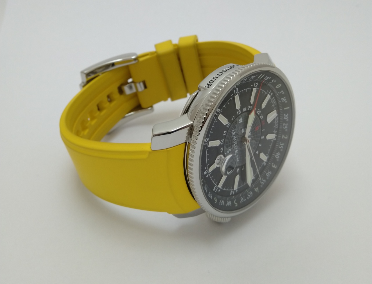 Желтый каучуковый ремешок с классической стальной пряжкой.