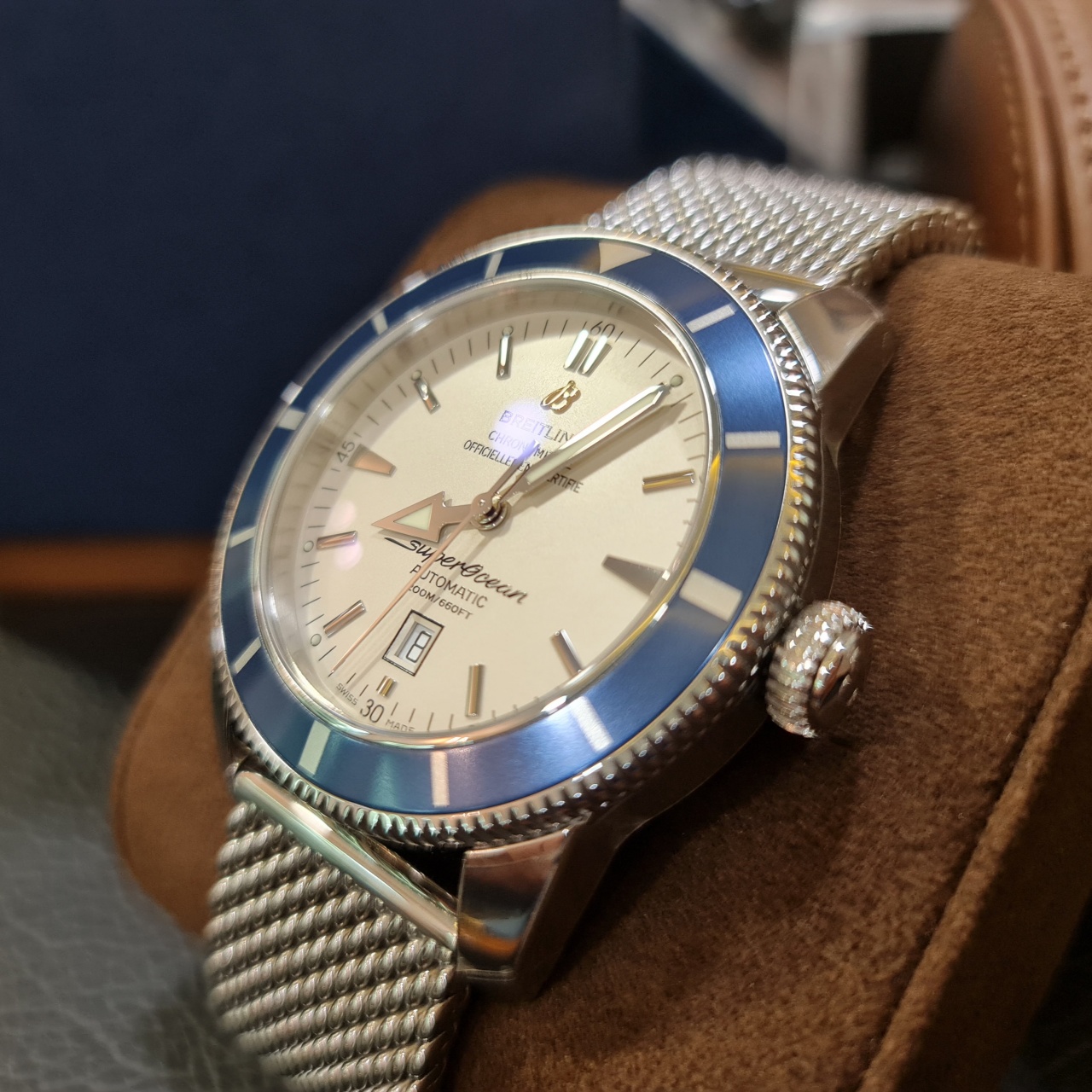 Мужские наручные часы Breitling Superocean Heritage A1732016/G642/152A. Оригинальные швейцарские часы в круглом корпусе из стали, размером 46 мм. Часы механика с автоподзаводом, с серебристым циферблатом. На стальном браслете.