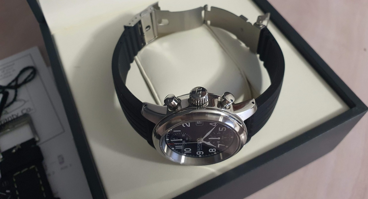 • Легендарный швейцарский производитель. Высочайшее качество и великолепный механический калибр на базе Valjoux 7750, на 25 рубиновых камнях, с балансовой частотой 28000 полуколебаний в час. Запас хода более 42 часов.