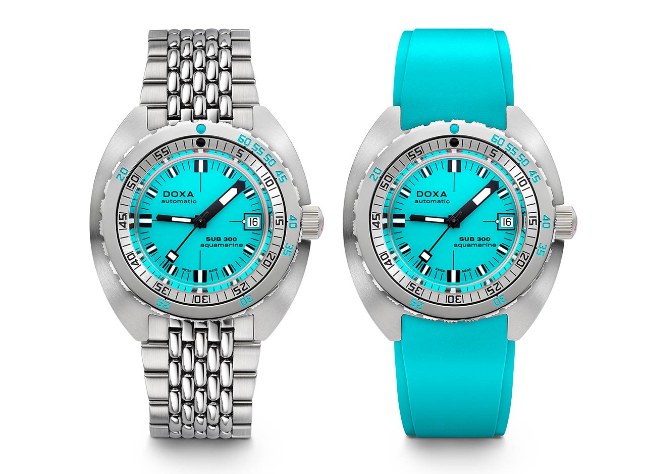 До сегодняшнего дня культовая модель DOXA SUB 300 была доступна только с тремя цветами циферблата: оранжевым, серебряным и черным. К 130-летнему юбилею компании