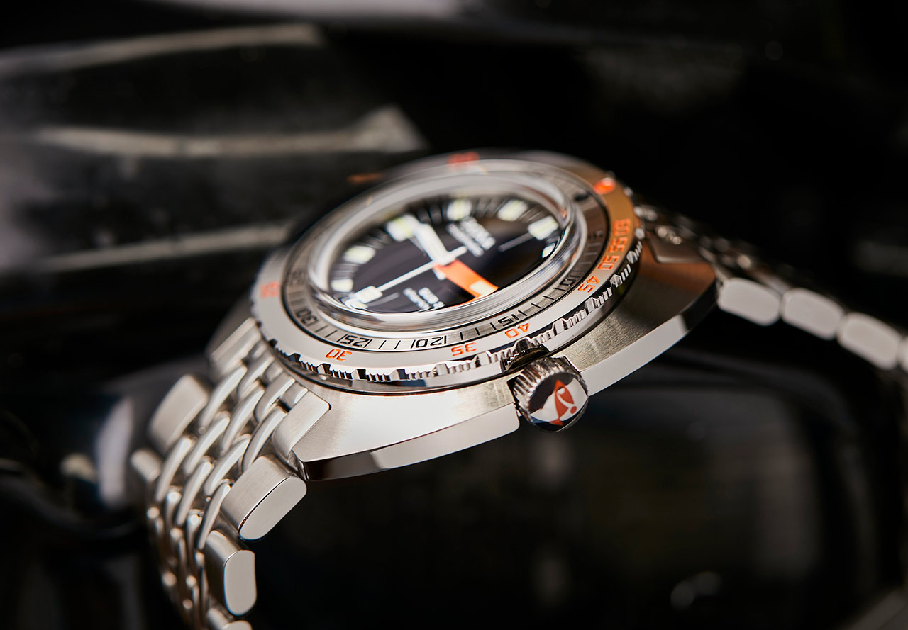 Новая модель SUB 300 представлена в корпусе из нержавеющей стали размером 42,50 x 45,00 x 13,40 мм с завинчивающейся заводной головкой и завинчивающейся стальной задней крышкой с выгравированным изображением парусника. Водонепроницаемость гарантируется до 30 атм (300 метров/984 футов). Циферблат часов защищен устойчивым к царапинам купольным сапфировым стеклом с антибликовым покрытием. Все индексы и метки, относящиеся к погружениям, имеют люминесцентное покрытие Super-LumiNova, обеспечивающее оптимальную читаемость в условиях плохой видимости. На запатентованном однонаправленном вращающемся безеле нанесена двойная индикация времени и глубины погружения - выраженная в минутах и метрах соответственно - для расчета и контроля времени без-декомпрессионного погружения.