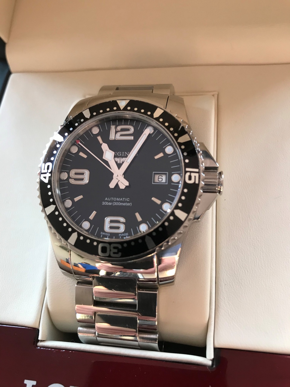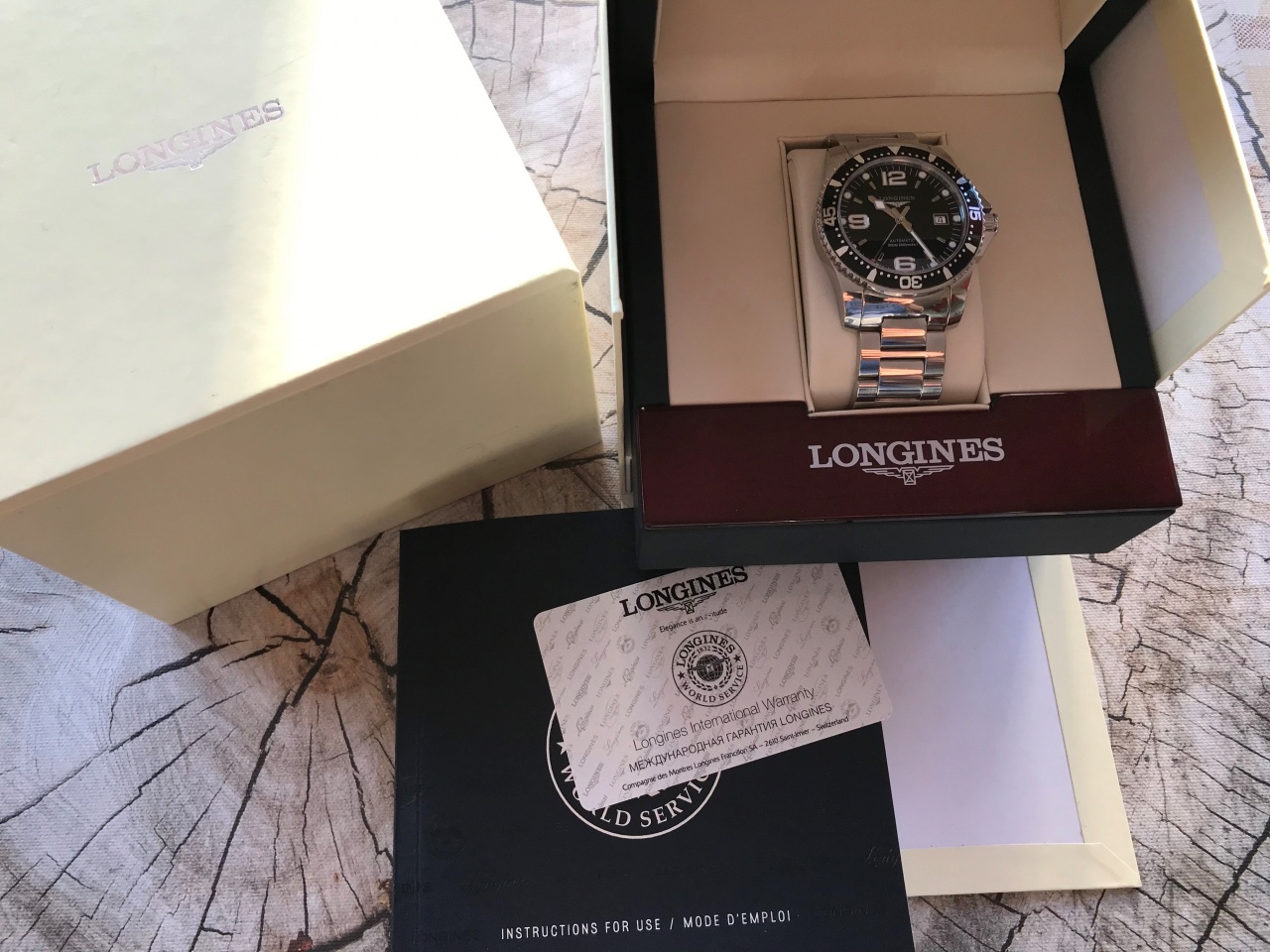 В наличии ХИТовый дайвер Longines HydroConquest L3.642.4.56.6 в отличном состоянии! Присутствуют легкие следы эксплуатации, в основном на безеле. Полный комплект: Часы, коробка, шкатулка, инструкция, гарантийная карта, чеки, карта бутика, доп. звенья.