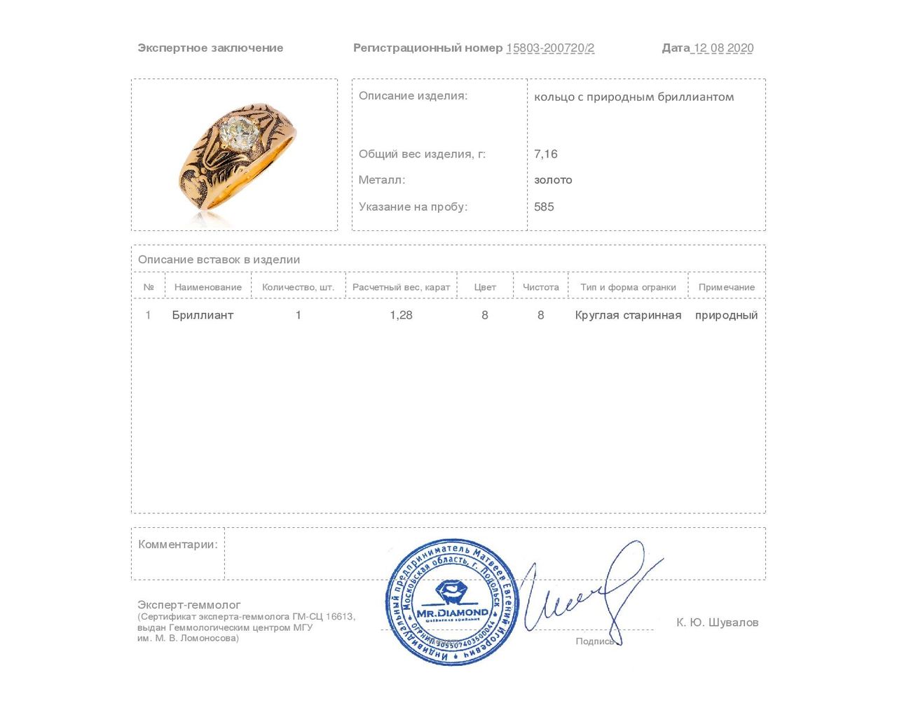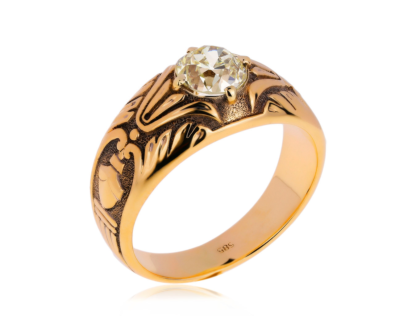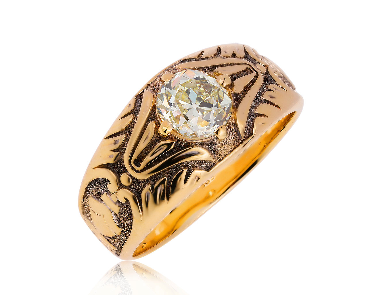 Королевское золотое кольцо с бриллиантом 1.28ct