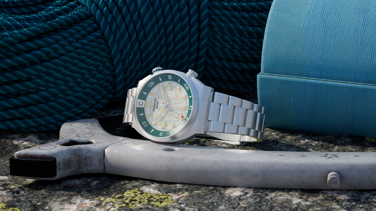 Внутренний безель, стилизован под компас со сторонами света, метки направления которого покрыты швейцарской Super-LumiNova (в темноте светятся зелёным цветом), в движение приводится с помощью зубчатой передачи верхней заводной головкой. Так же нужно отметить, что цветовая гамма выбрана не случайно. Глубокий бирюзовый цвет безеля символизирует собой цвет озер Приэльбрусья. В темное время суток, центральная окружность циферблата светится голубым цветом. С внешней стороны циферблат обрамляет окружность светящаяся зеленым