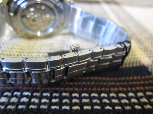 Стальной корпус и браслет (сочетание сатинированных и полированных участков), сапфировое стекло, текстурированный цифер, накладные метки, прозрачная завинчивающаяся задняя крышка