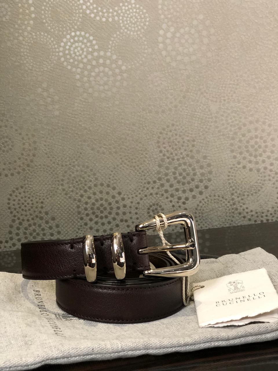 BRUNELLO CUCINELLI новый мужской ремень из телячьей кожи /двойная шлёвка и наконечник/