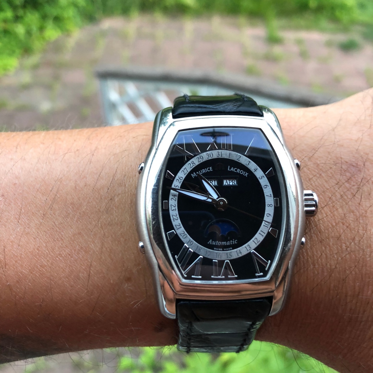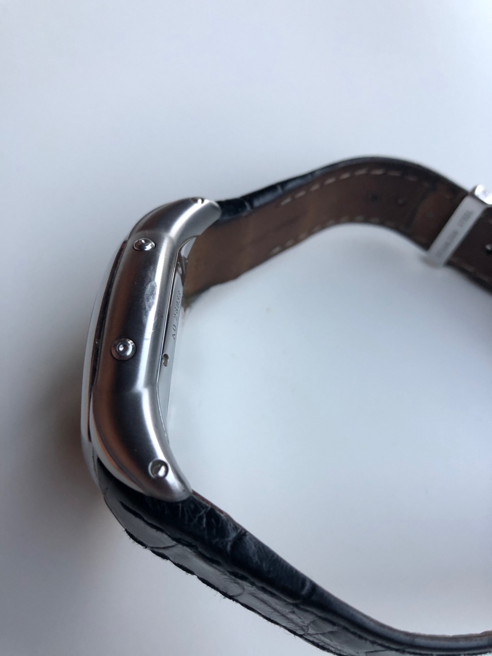 Из минусов - небольшая вмятина на левой нижней стороне корпуса (на последних фото видно), задел об стол в свое время, при ношении она не видна, бОльшая часть ее уйдет при полировке.