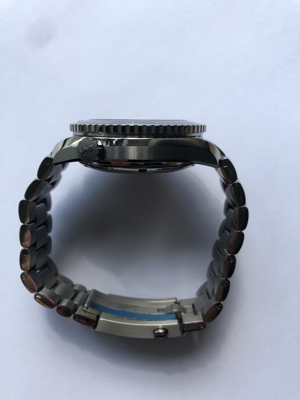 На ее синем циферблате, защищенном устойчивым к царапинам сапфировым стеклом, выделяется окошко указателя даты в положении «3 часа». Корпус диаметром 45,5 мм из титана с титановым браслетом дополнен синим керамическим дайверским безелем, вращающимся в одном направлении, с дайверской шкалой из сплава Liquidmetal™.