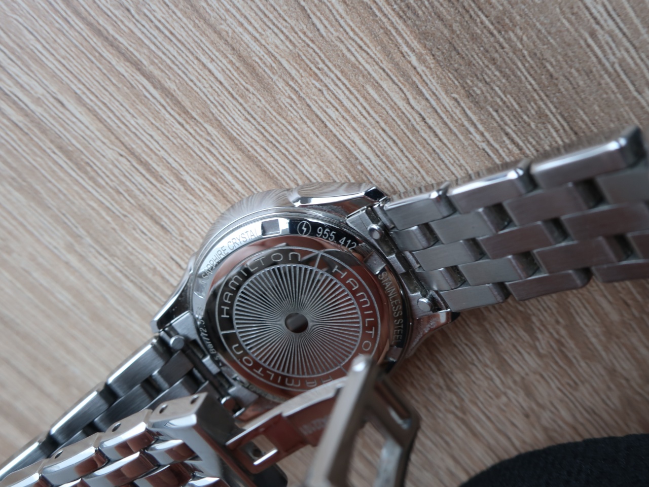 Часы надевали несколько раз. Состояние новых. При замене батарейки немного поцарапали заднюю крышку. Браслет уменьшен на запястье 14,5-15 см. Снятые звенья в комплекте.