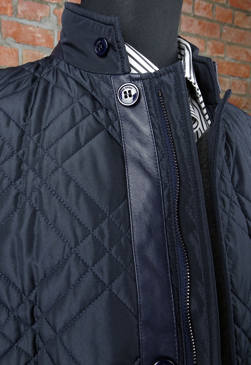Стильная мужская куртка. Современный фасон. Отлично сидит по фигуре. Стеганый узор ромбом. Шерстяная подкладка. Эффектно отделана деталями из натуральной кожи.