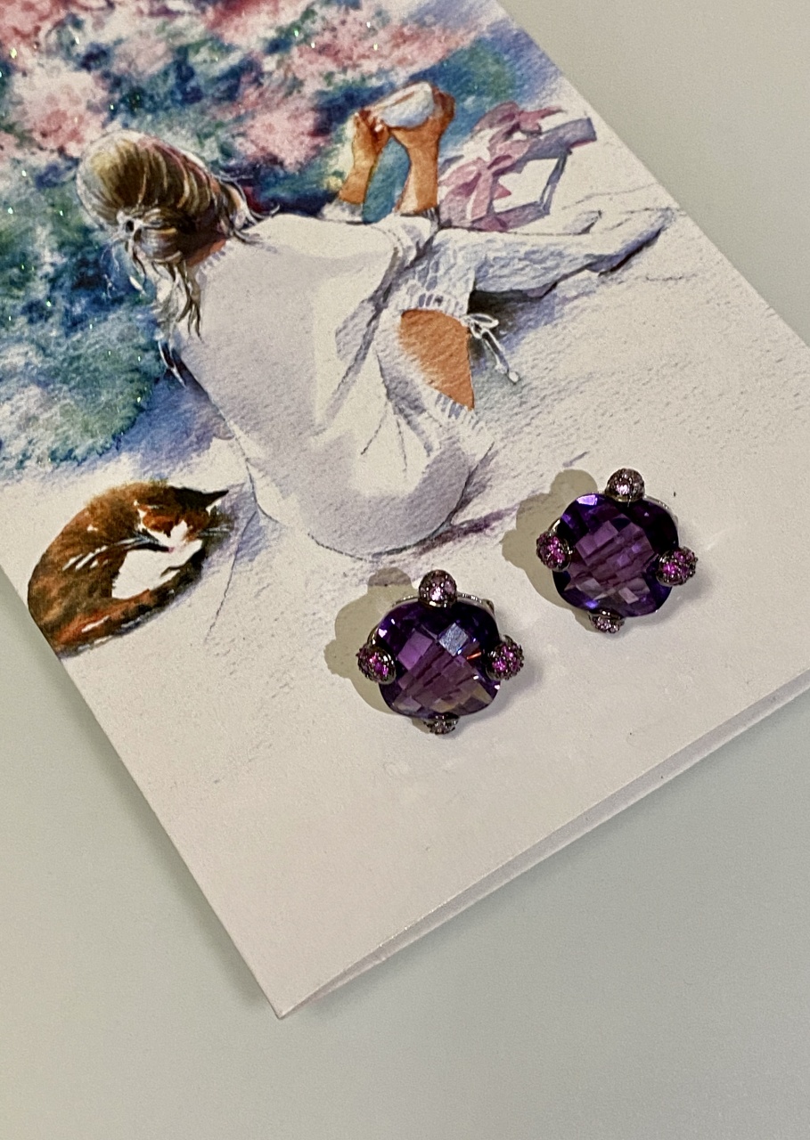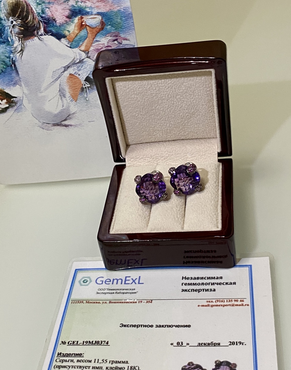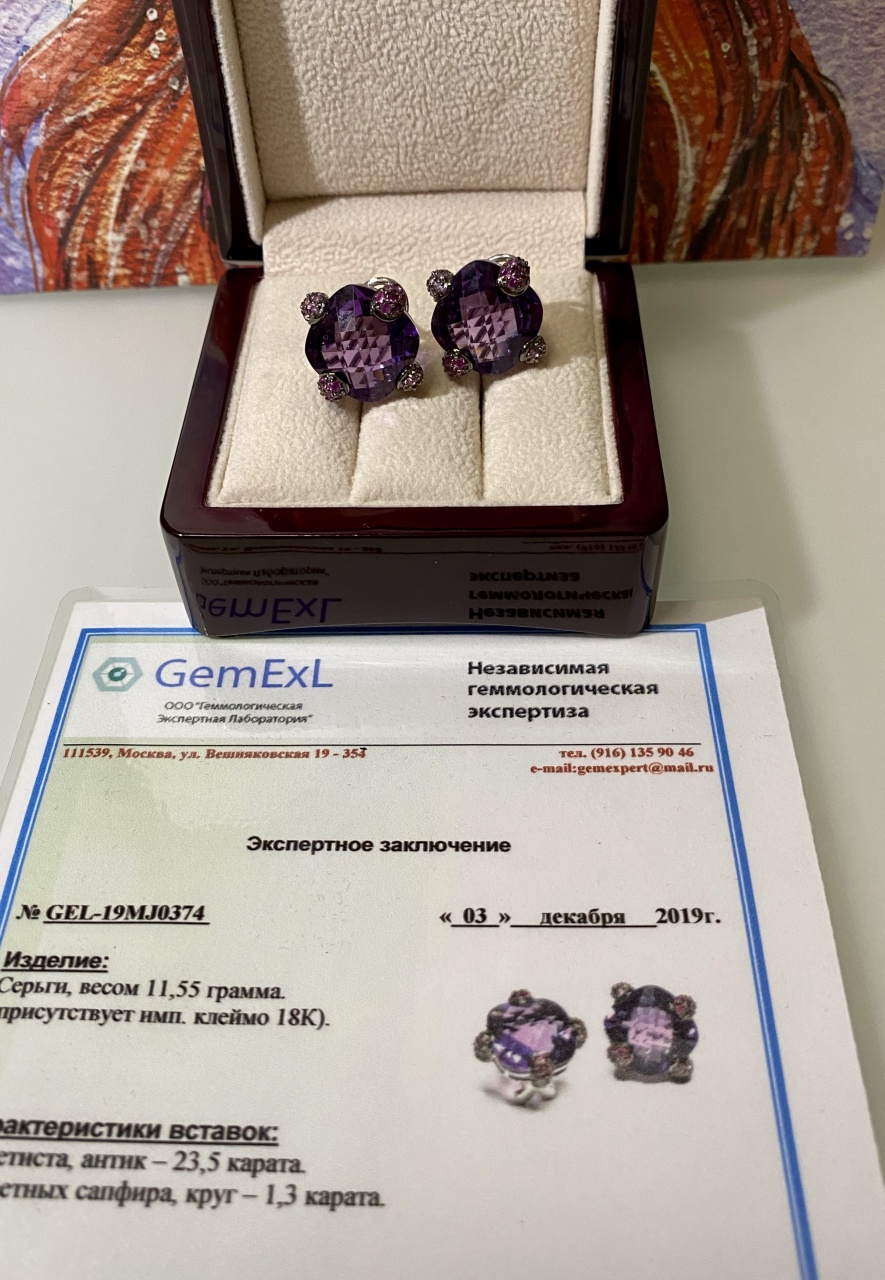 КРАСИВЫЕ СЕРЬГИ С АМЕТИСТАМИ 23,5 CT и САПФИРАМИ, СЕРТИФИКАТ, ТОРГ/ОТПРАВКА