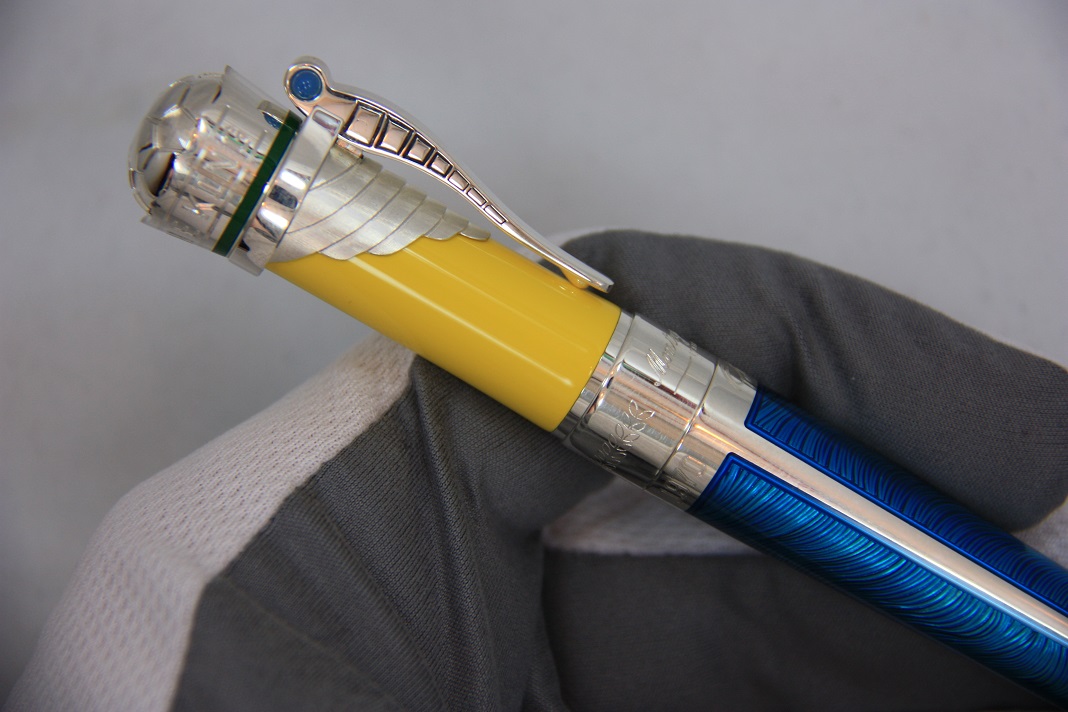 Коллекция Montegrappa Pele Heritage выпущена ограниченным тиражом: 1283 роллера и 1283 перьевые ручки из серебра (по числу забитых Пеле голов).