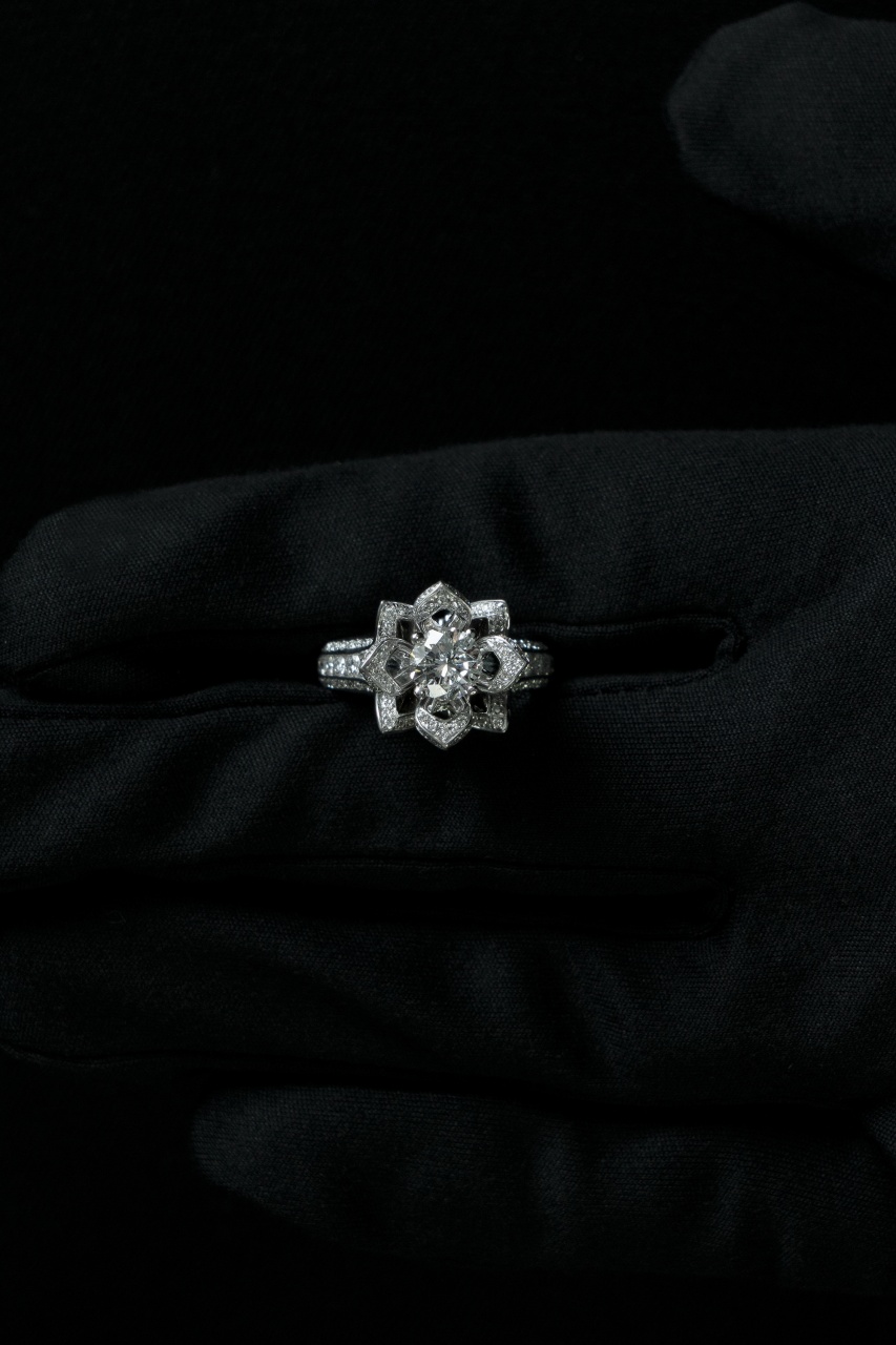 Изысканное украшение поражающее своей лаконичностью и необычной формой, бриллианты словно лепестки цветка.