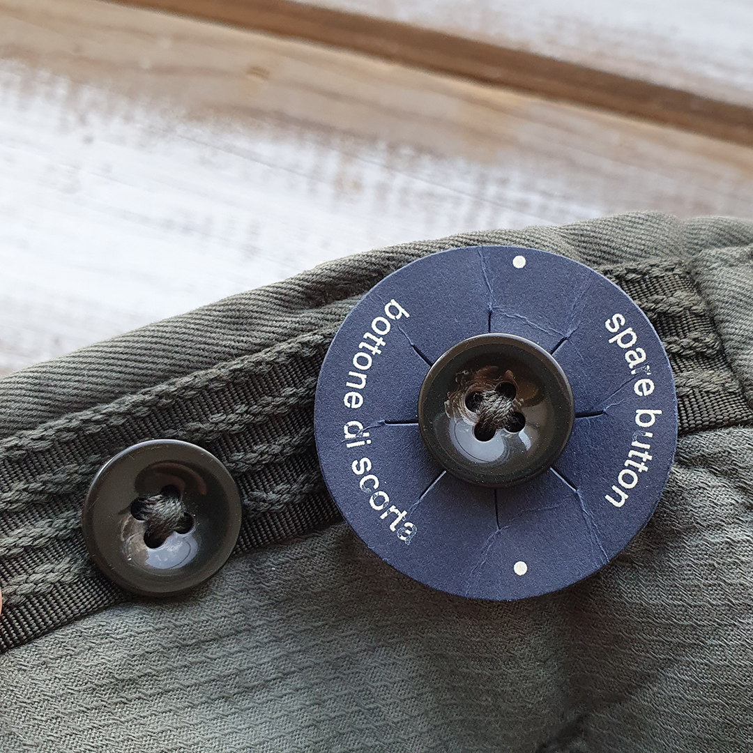 - Застёжка на пуговицы из натурального рога и молнию.