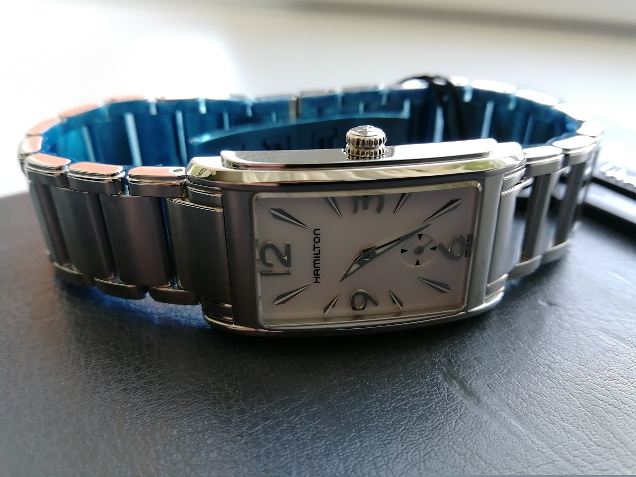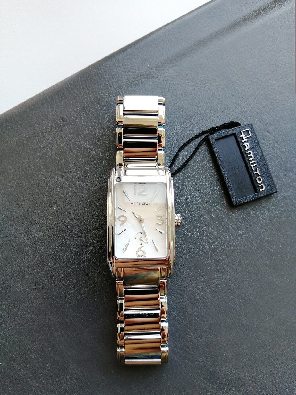 В продаже по-настоящему прекрасный женский трёхстрелочник прямоугольной формы от породистого швейцарского производителя не нуждающегося в представлении. Редкой красоты циферблат из натурального перламутра, переливающийся всеми цветами и оттенками радуги. Фото, к сожалению, не передает всей красоты циферблата. Шикарный литой браслет с очень комфортной посадкой на руку. Всё очень качественного исполнения.